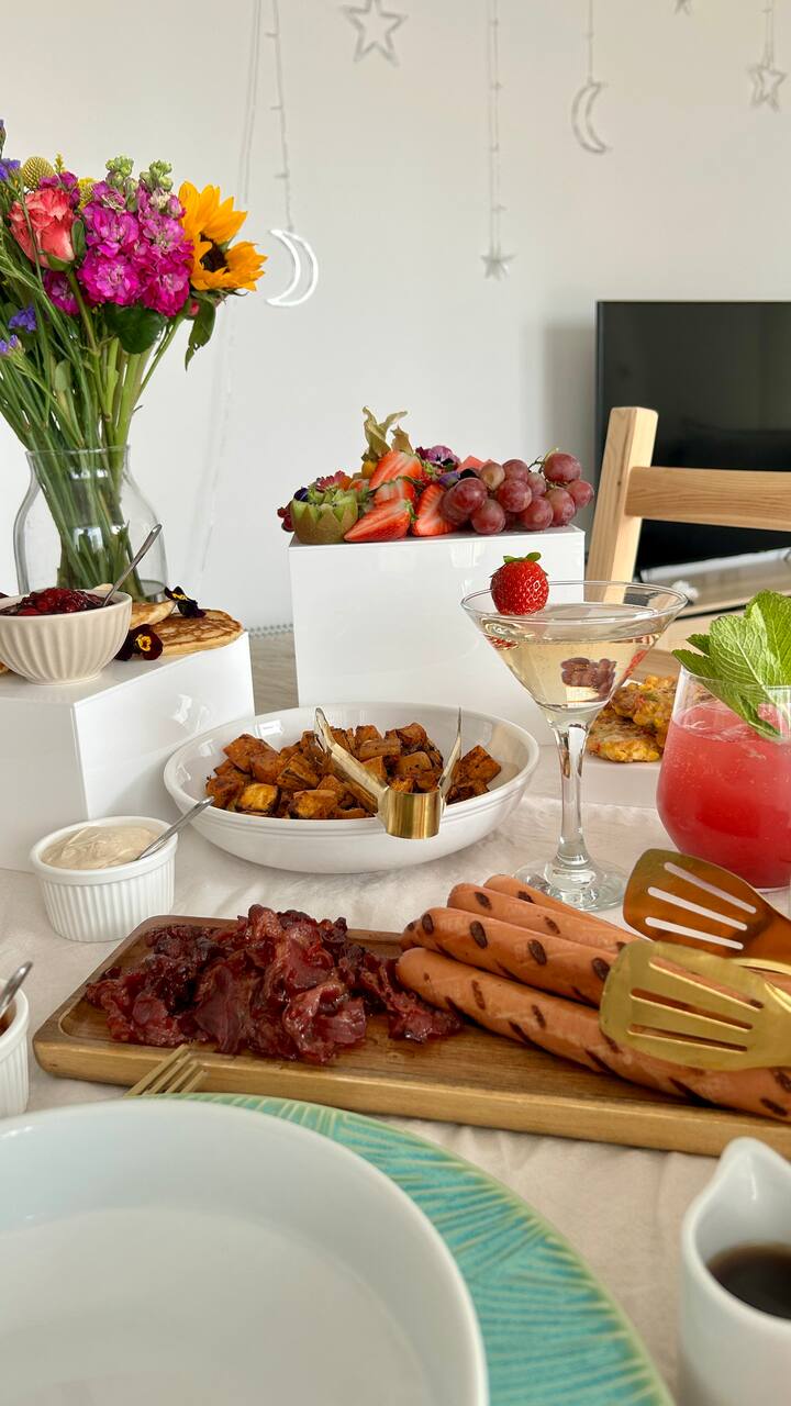 Una experiencia de brunch refinada que celebra los mejores ingredientes de temporada, cuidadosamente preparados con un toque de lujo. Espere platos bellamente equilibrados, una presentación elegante y sabores reconfortantes pero elevados. Perfecto para mañanas relajadas, celebraciones o inicios tardíos indulgentes, este brunch está diseñado para sentirse sin prisas, generoso y memorable, llevando la calidad a nivel de restaurante a la privacidad de tu Airbnb.