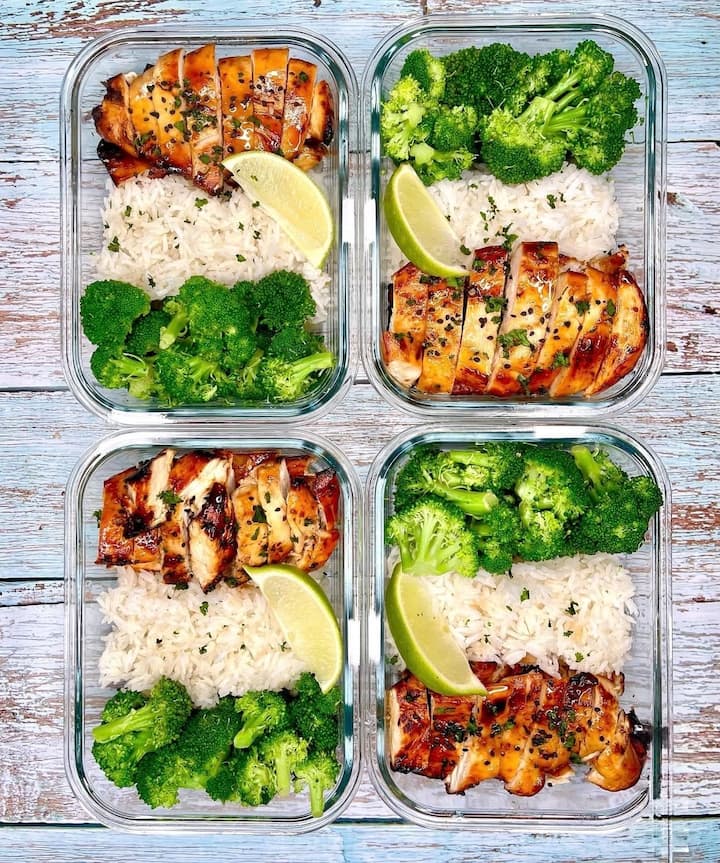 Almuerzos listos para comer en la semana, contiene proteína, carbohidratos y vegetales o ensalada