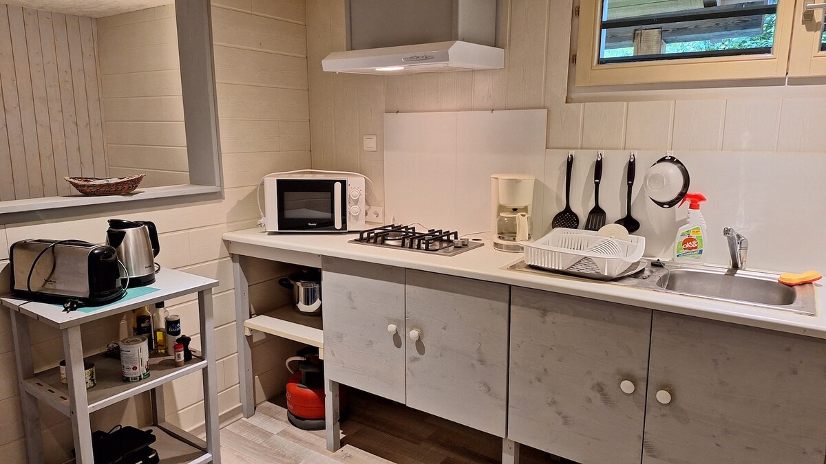 El apartamento tiene su propia entrada que se abre directamente a la sala de estar (con cocina americana: minihorno, microondas, vitrocerámica de gas, nevera con congelador, hervidor de agua y cafetera). El sofá cama de esta habitación se convierte en una cómoda cama individual. Al lado está el dormitorio doble. Tienes garantizada una gran noche de sueño en la cama de latón antiguo. El baño con ducha, lavabo de cobre, cabina de ducha e inodoro está en suite en el dormitorio. ¡Los huéspedes pueden sentarse junto al río y disfrutar de una barbacoa o un buen descanso!