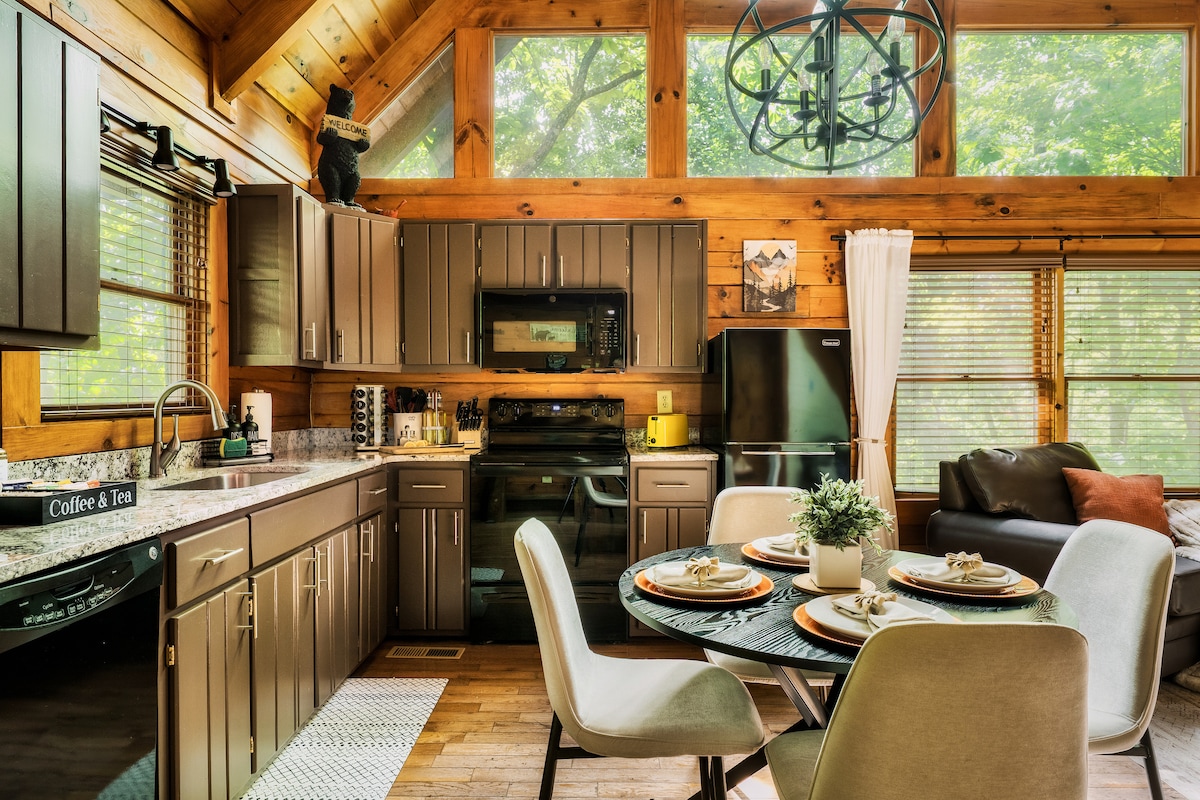Al entrar en la cabaña, la impresionante belleza de los troncos escandinavos importados llena tus sentidos y te da la bienvenida a tu nuevo hogar lejos de casa. Disfruta de las muchas comodidades y comodidades en esta cabaña de diseño profesional que se encuentra en un tranquilo entorno boscoso semi aislado. Haz un corto viaje de 2,5 millas a la avenida principal en Pigeon Forge, que te aleja a minutos de Dollywood, The Island y muchas otras atracciones.
