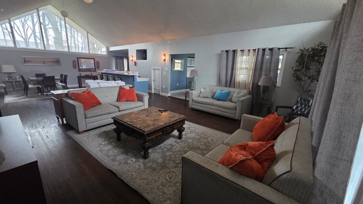 Cancha de pickleball privada iluminada, piscina enorme, jacuzzi para 8 personas, patio cubierto grande y hermosa vista al lago. Cocina de diseño, baño principal de lujo con sauna, ducha de vapor y una acogedora bañera profunda. Shuffle board, televisores grandes en las habitaciones, malla wifi de alta velocidad, sistema de juegos Switch con varios controladores. Cada habitación tiene acceso a su propio baño. La habitación de literas para niños recientemente agregada tiene 400 pies cuadrados y tiene 6 camas individuales, 6 pufs gigantes y cuatro televisores de 75pulgadas.