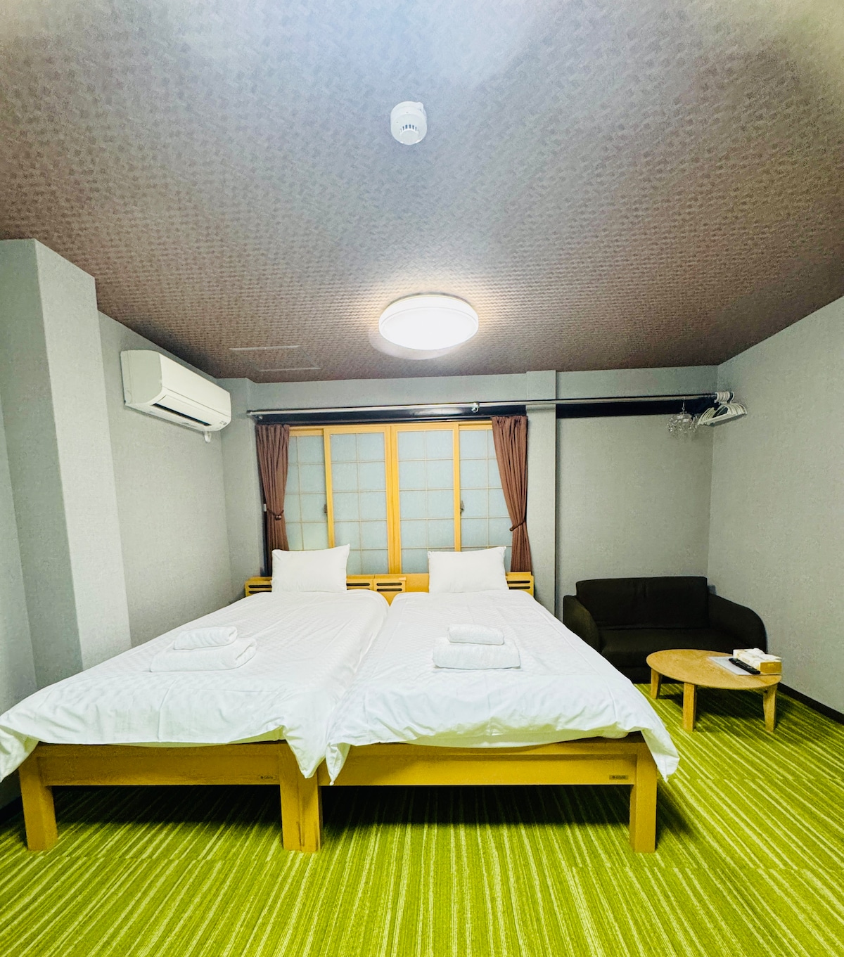 D3 Kyoto Shijō Kawaramachi, la ubicación es excelente, la cama es cómoda, el baño está renovado y tiene una mesita para poder trabajar mientras se viaja [cama doble + cama individual]. Se puede dormir sin molestias.