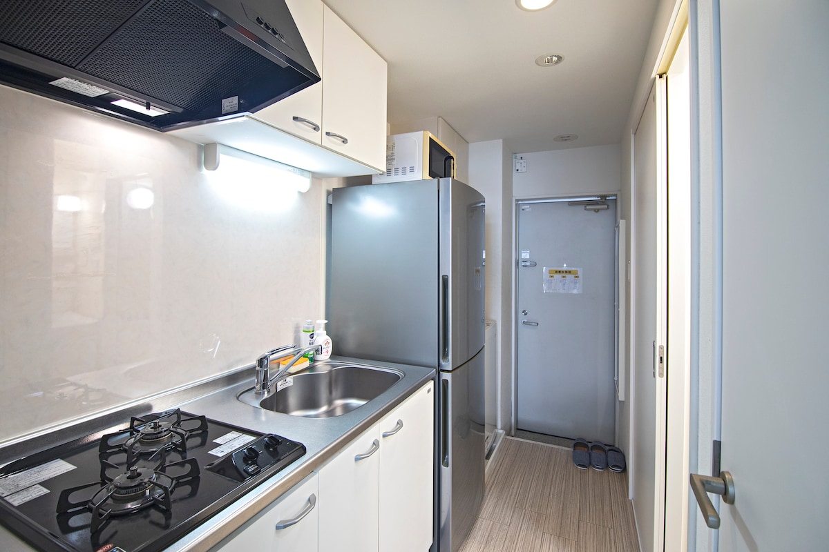 CC1 Kyoto Shijō Kawaramachi, cerca de Takashimaya, con ascensor y balcón, a poca distancia del mercado de Nishiki y del jardín Kyogoku, junto al río Kamo [Alojamiento artístico en Kioto - Cama doble], baño y cocina nuevos