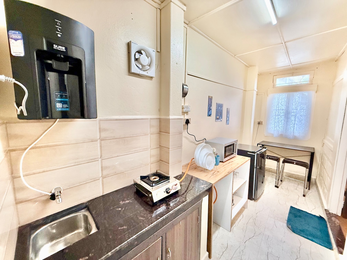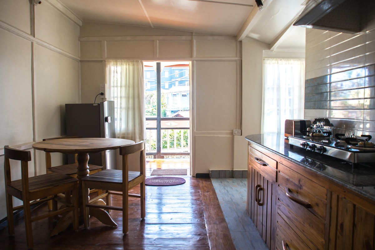 Ubicado en el cuarto piso de una encantadora casa, este estudio privado en la azotea ofrece un refugio tranquilo con impresionantes vistas panorámicas de las colinas de Shillong. Perfecto para viajeros solitarios, parejas o familias pequeñas, el espacio garantiza una privacidad completa y un ambiente acogedor para relajarse. Un estudio luminoso y espacioso con cama tamaño king, cocina pequeña bien equipada y un baño moderno con agua caliente las 24 horas, los 7 días de la semana. Un balcón privado para disfrutar de tu café por la mañana o té por la noche mientras te sumerges en el paisaje brumoso.