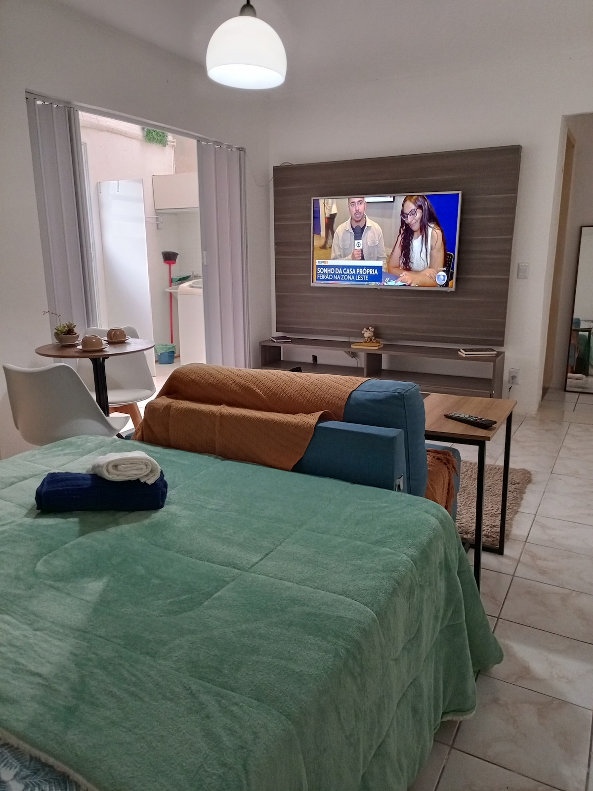 Habitación estudio ubicada a 5 minutos a pie de la estación de metro Shopping Tatuapé, ideal para aquellos que buscan un lugar tranquilo y bueno para descansar de la rutina diaria, cerca de la avenida Salim Farah Maluf y Radial Leste . El alojamiento tiene una cama doble, nevera, horno microondas, estufa de inducción, ventilador de techo, televisión , hervidor eléctrico, armarios, escritorio, utensilios de cocina, toallas , almohadas y sábanas,
