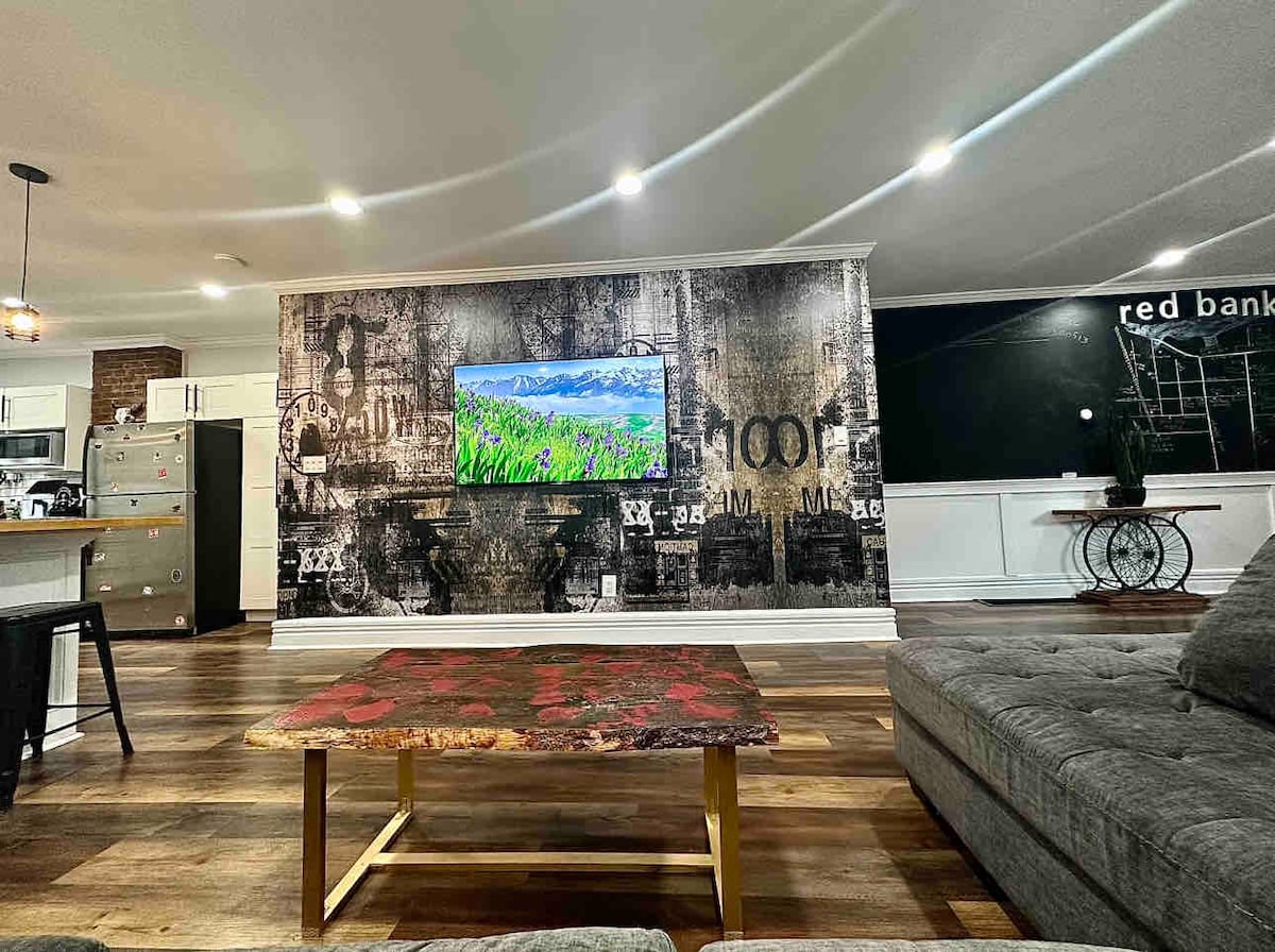 El Red Bank Retreat es un acogedor apartamento en el segundo piso a solo 7 minutos a pie de las tiendas, cafeterías y restaurantes del centro de Red Bank. El espacio cuenta con una cama tamaño king en el dormitorio con vestidor, una sala con escritorio de pie y sofá cama doble, una cocina completa y un baño relajante con bañera. Disfruta de una cómoda sala de estar con TV inteligente. Nota: Las playas de la costa de Jersey y los trenes/ferris a Nueva York están cerca. El ruido del tren se puede escuchar por la noche; no hay lavavajillas, lavadora/secadora y no hay máquina de hielo automática.