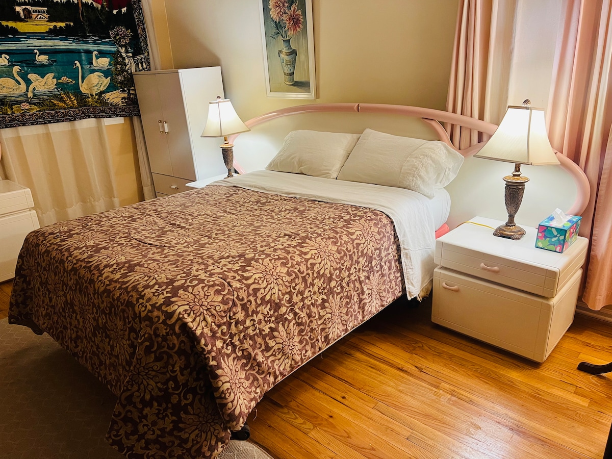 Acogedora habitación privada con cama tamaño queen, TV y aire acondicionado
