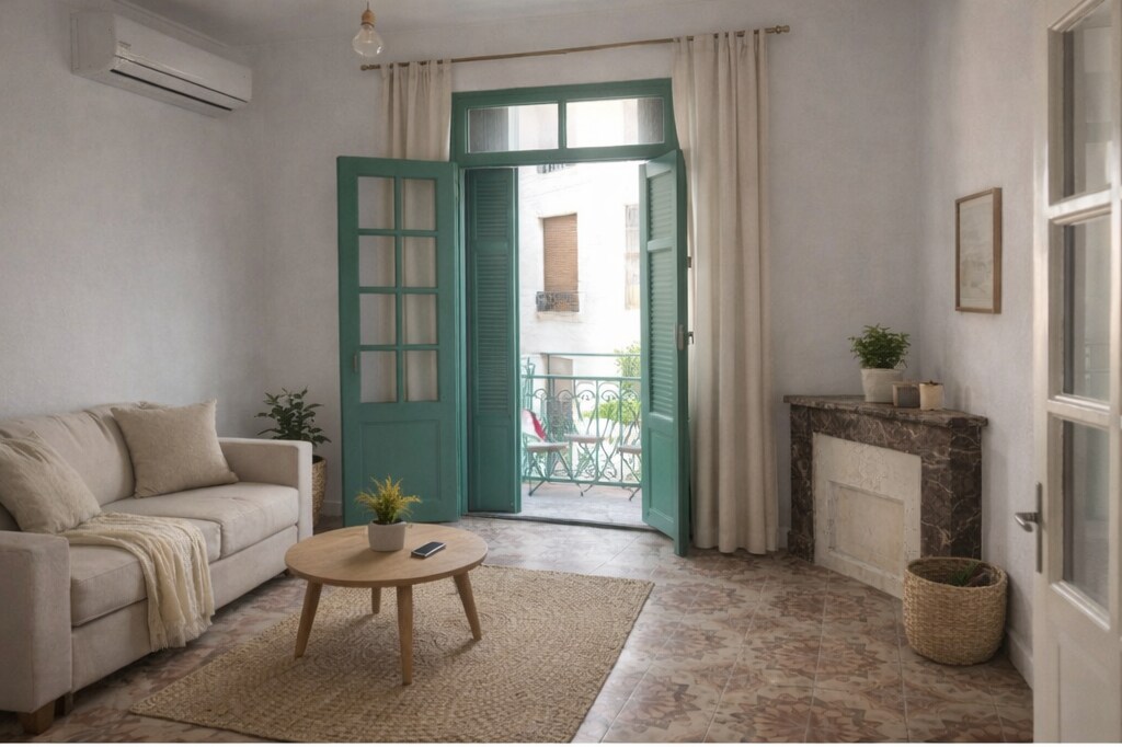 Un apartamento típicamente tunecino con el encanto de los edificios de la medina con estas cerámicas estas baldosas de cemento y sus ventanas de madera talladas que bañan el apartamento en una hermosa luminosidad blanca y verde. Las ventanas azules sobre un fondo de paredes blancas las puertas amarillas típicas de la medina de Túnez los mármoles de las escaleras... todo esto le dará la experiencia de una experiencia real en el corazón de la encantadora medina de Túnez.