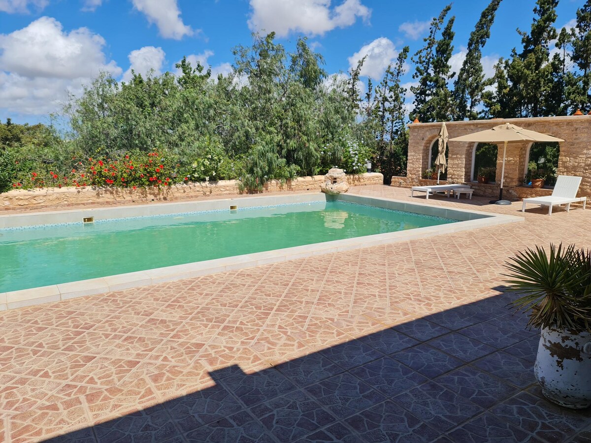 Encantadora villa familiar de 2 niveles, independiente, espaciosa, bien iluminada, una gran piscina privada de 75 m² y un hermoso jardín. Ubicado en el campo, a 16 km de Essaouira en Sidi Kaouki rd, tiene un lujoso acabado, chimenea, chimenea abierta en el jardín, olivos y frutales y dos hermosas terrazas con pérgolas. Moderno y tranquilo. Aeropuerto a 6,5 km y tiendas y un supermercado a 10 minutos. Necesitarás un vehículo para moverte.