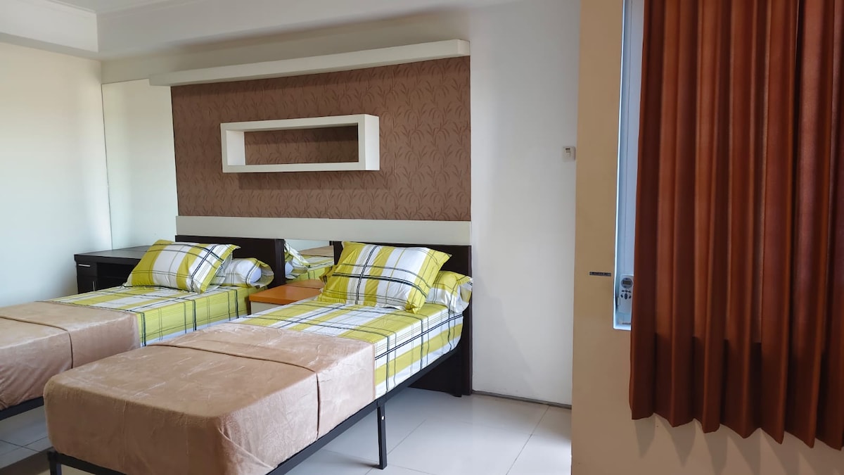Una residencia ubicada en la frontera de la ciudad de Surabaya-Sidoarjo, a solo unos minutos de la UPN, la estación de tren, la autopista Tambak Sumur y el aeropuerto Juanda. Todas las habitaciones privadas son adecuadas para 4 personas, pero se pueden maximizar hasta 5 personas y cada dormitorio tiene aire acondicionado y 1 baño público con calentador de agua. En el entorno de la casa hay una piscina y un campo de deportes (fútbol sala, voleibol y baloncesto), así como un estanque de pesca fuera del área del complejo residencial al que se puede llegar en 6 minutos.
