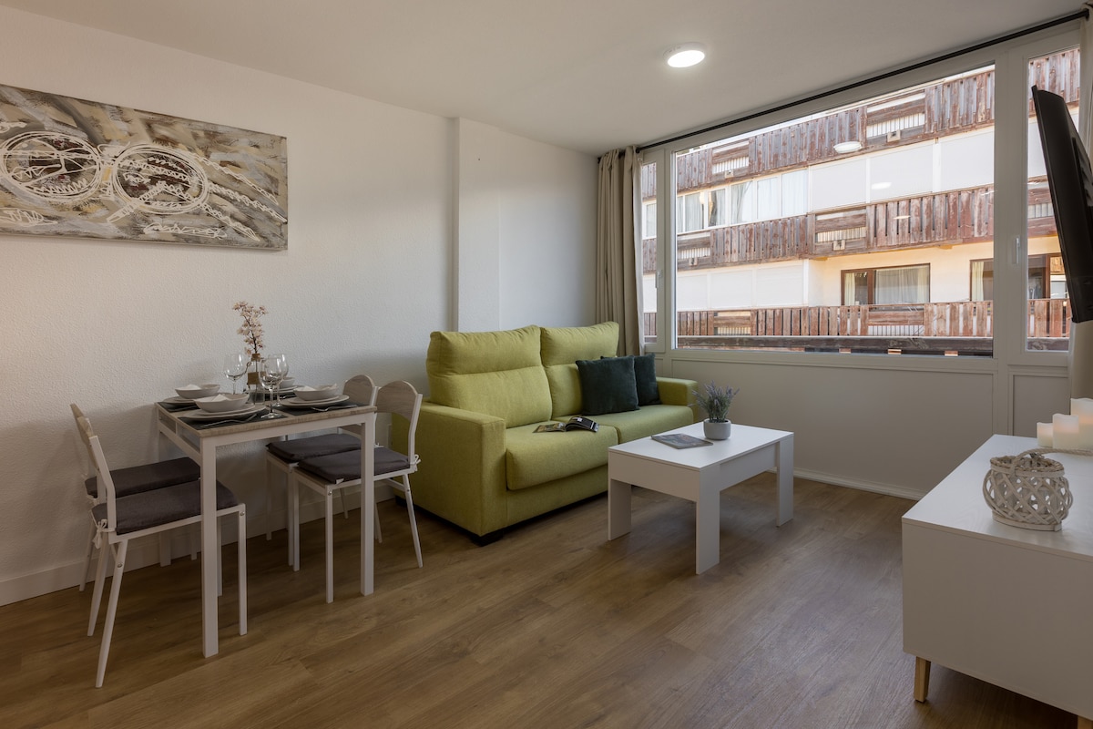 Apartamento situado en zona media en uno de los edificios mas nuevos de la estación, el Edificio Monte Oiz 2. Apartamento para 4 personas con salon-cocina, un dormitorio , un cuarto de baño y garaje. Está actualmente en proceso de renovación, por lo que aún faltan algunos detalles decorativos. Muy buenas vistas y bien ubicado a 360 metros de la primera parada del telesilla, a 10min andando de la plaza principal y con parada de autobús en la puerta.