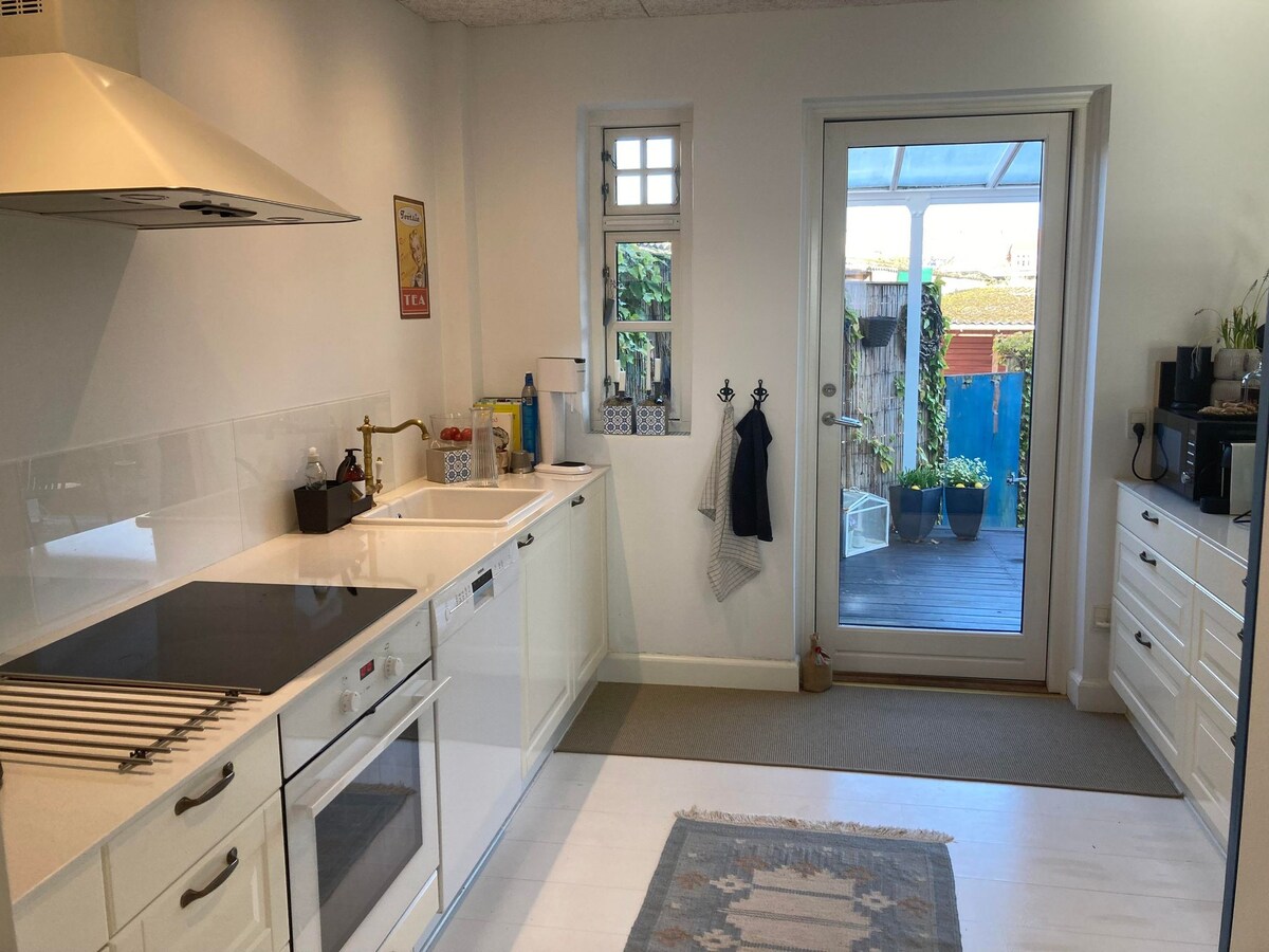Hermosa casa de pueblo recientemente renovada en Sydbyen, Silkeborg. La ubicación junto al lago coloca la casa cerca de Vestre Søbad, Østre Søbad, el bosque, el centro de la ciudad y todo lo necesario para la vida cotidiana. La casa tiene una gran cocina luminosa con comedor para 10 personas. La casa tiene 4 plantas con dormitorios en el sótano, 1ª planta y 2ª planta con capacidad para 7 personas y con posibilidad de camas supletorias. La casa tiene una estufa de leña y el patio cerrado más hermoso con terraza cubierta, chimenea y un hermoso invernadero. La casa tiene soportes Clever.