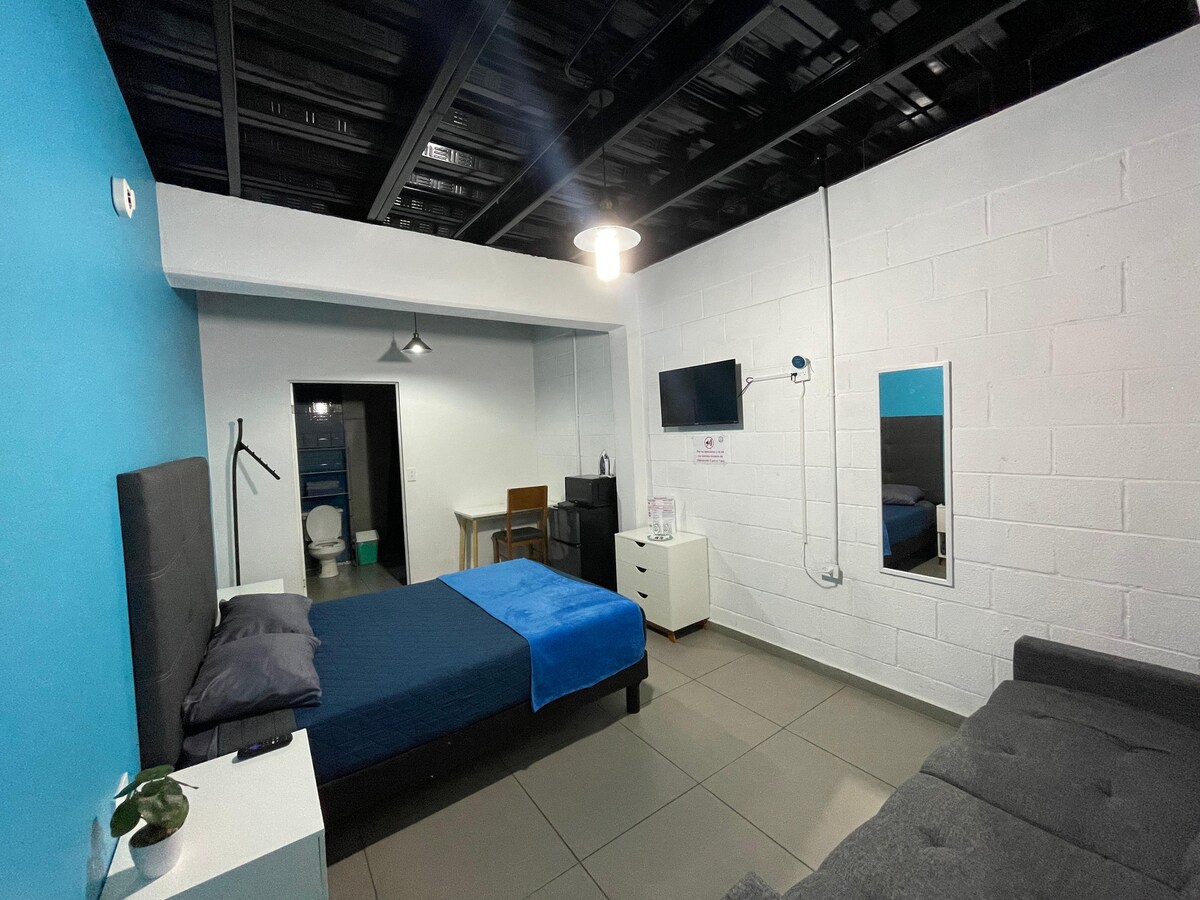 Excelente lugar para pasar tu estancia en un lugar cálido, cómodo y tranquilo para ti y tu familia Entrada independiente y totalmente privado Estamos frente a hermoso parque con áreas verdes para jugar, leer o ejercitarse A a media cuadra hay una tiendita de abarrotes. Y a 4 cuadras una farmacia Guadalajara o un oxxo con gasolinera Contamos con lava-secadora para mayor comodidad. Jabón en polvo y suavitel incluidos Dejamos 2lts de agua purificada, además café soluble y para cafetera :)