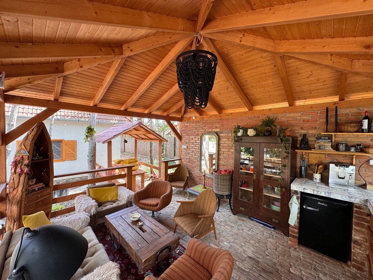 Bohome Balaton es una casa de apartamentos recientemente renovada a solo 650 metros del lago Balaton con sauna, jacuzzi, parrilla, gran chimenea al aire libre y una cómoda sala de estar al aire libre y cocina al aire libre totalmente equipada. La casa está situada en un entorno tranquilo con muchos pinos y un estanque en el jardín como si estuvieras en un bosque. Hay 4 apartamentos, cada uno con 2 dormitorios, 1,5 baños, una sala de estar, una cocina totalmente equipada y una terraza privada. Tendrás toda la casa para ti.