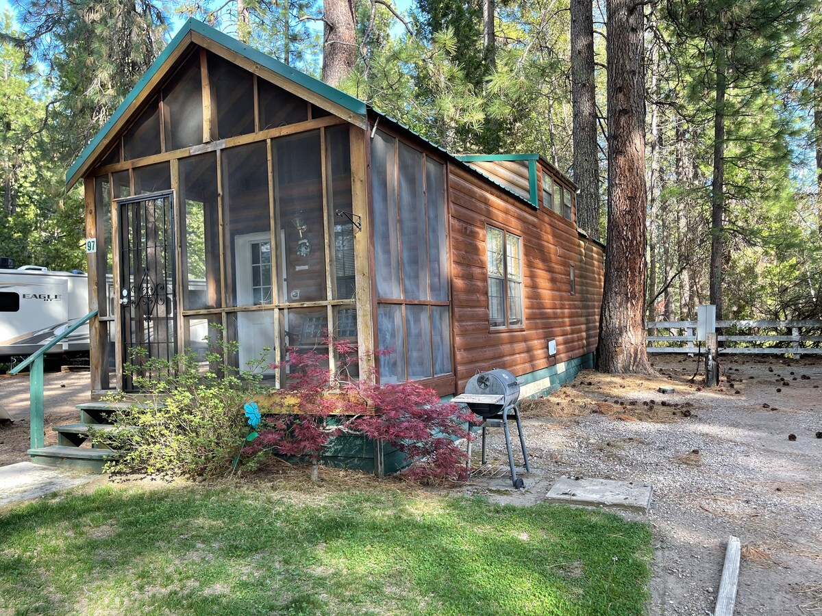 Es una hermosa cabaña escondida bajo los pinos. Cerca del monte Shasta y de las zonas de esquí, pesca y senderismo, así como de la histórica ciudad de Dunsmuir. Hay una cocina con un refrigerador de tamaño completo para que puedas quedarte o disfrutar de una comida encantadora en la ciudad. El monte Shasta está a unos 10 minutos con tiendas y restaurantes maravillosos para explorar. La cabaña está ubicada en Cedar Pines RV Resort, por lo que hay un amplio estacionamiento para remolques. Hay cámaras de seguridad alrededor del parque, pero no hay cámaras en la cabaña.