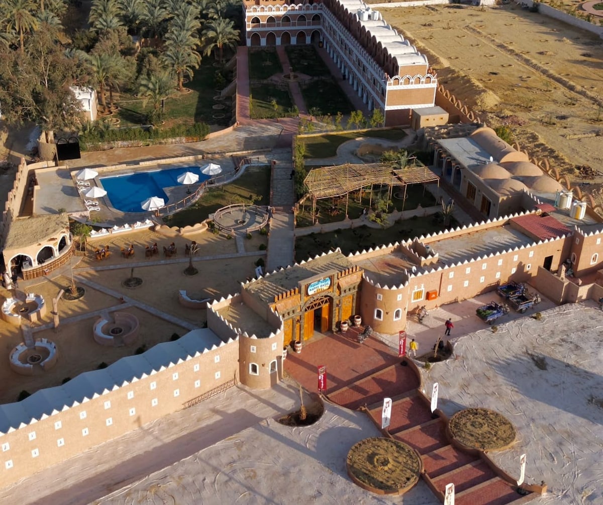 Soléi Royal | Donde el legado real se encuentra con la elegancia del desierto. En un lugar privilegiado con vistas a la Montaña Blanca de Siwa y al sereno lago, Soléi Royal combina patrimonio y lujo. Construida con piedra de sal, madera de olivo y troncos de palma, esta villa refleja la auténtica artesanía de Siwan. Los huéspedes disfrutan de un jardín privado, dos piscinas, un manantial natural y un establo de caballos, que ofrecen una escapada real al desierto en una casa que una vez perteneció a un descendiente de Khedive Mohamed Ali Pasha.