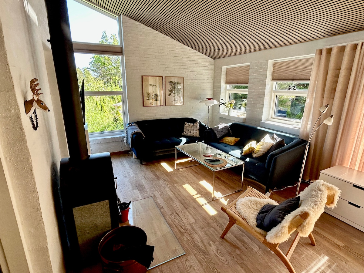 En una con la naturaleza, acogedora casa de verano grande recientemente renovada en una zona tranquila. ¿Te gusta la playa, el bosque, la vida del centro vacacional, el MTB, el golf, el pádel, Fårup Sommerland o simplemente a un viaje de todo? Aquí tienes algo para todos los gustos. La casa se mantiene en estilo original con espacio y aire para vacaciones con hasta 2 familias (9 huéspedes). Sea cual sea el clima, se puede disfrutar de la ducha al aire libre, el jacuzzi, la bañera de agua fría y la sauna. La casa, el anexo y la cochera crean refugio, y están unidos por una terraza de madera y un pequeño césped con la posibilidad de diversas actividades al aire libre.