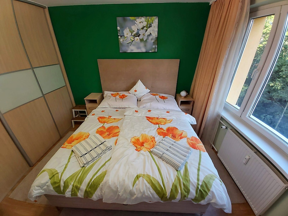 Apartamento de 1 habitación con balcón y aparcamiento gratuito en una plaza de aparcamiento reservada justo al lado de la casa. Apartamento de 30 m2 con vistas a Austria y al atardecer También se admiten animales. Equipamiento del apartamento: - 2 toallas grandes y 2 toallas pequeñas - gel de ducha, champú, - productos de limpieza - café, té El apartamento está situado al comienzo del distrito de Záhorská Bystrica en Bratislava. La accesibilidad es de 2 minutos a pie de la parada de autobús (Krče), 20 minutos en autobús desde la estación principal, 15 minutos en coche