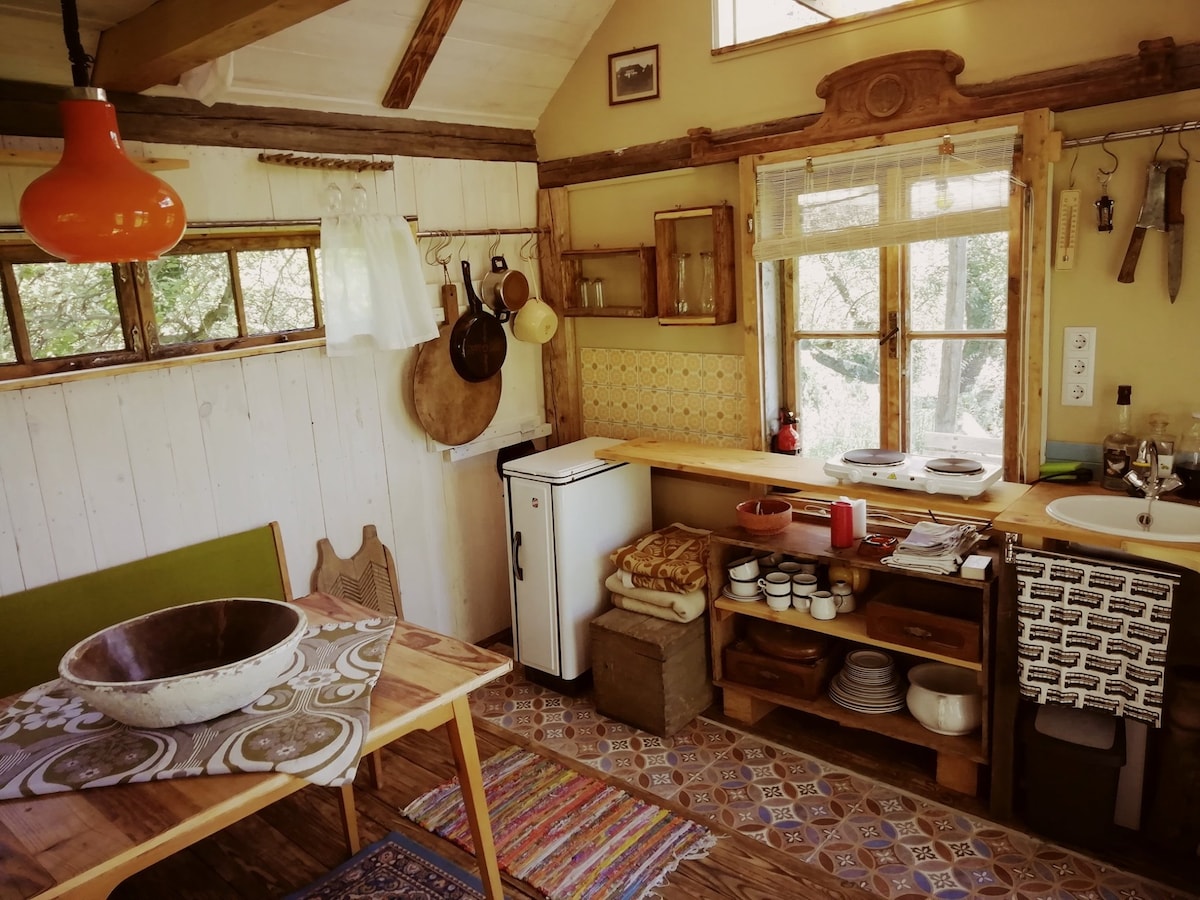 Cabaña ecológica romántica en el bosque, sauna, senderismo, bicicleta