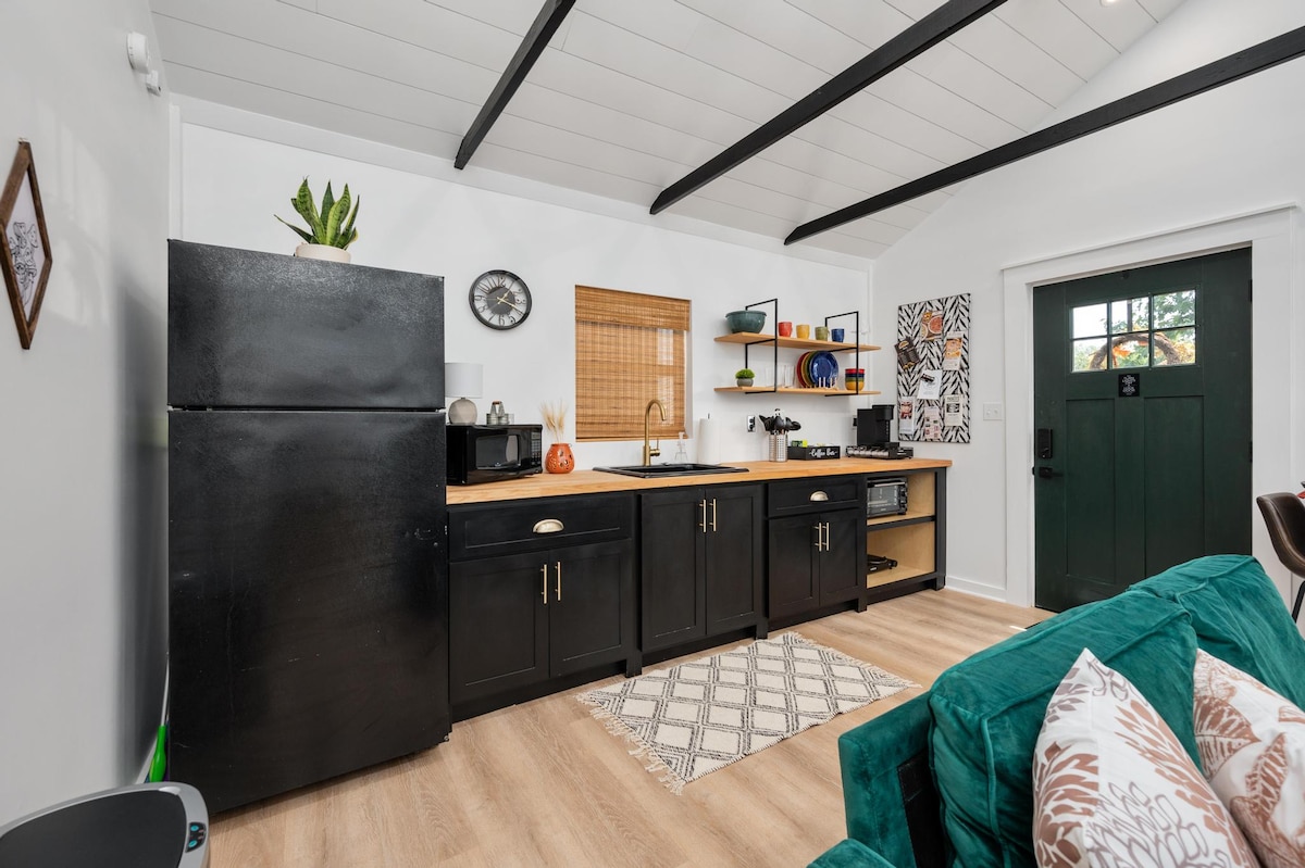 Inspírate y refúgiate en nuestra morada única y artística. ¡Ponte cómodo con un poco de té y una película o prueba suerte con un juego de dardos! ¡Construye una hoguera en el aislado patio trasero y toca algunas canciones! Ya sea que estés buscando trabajar un poco o cocinar una comida para tus seres queridos, ¡nuestra humilde casa está lista para tu aventura! Ubicado en el histórico Nolensville, está a solo un salto de tiendas y restaurantes, incluido el mercado natural Oh My Chives (sándwiches + café + zumo), un mercado amish, un parque y mucho más.