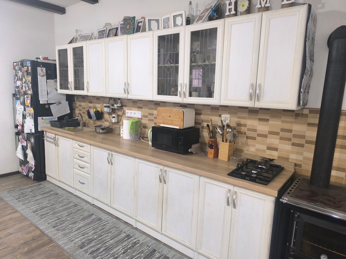Alojamiento para solteros, parejas, pero también familias con niños. Los huéspedes tienen privacidad, la casa alquila 2 dormitorios, una sala de estar, un kychy y 1 baño junto con un inodoro. Los huéspedes tienen un patio trasero soleado con asientos al aire libre, cama elástica para niños, estacionamiento seguro en el patio, parque infantil público cercano, se puede utilizar el garaje previo acuerdo. Parada ZSR: 10 minutos, AUTOBÚS a 15 minutos, transporte público a 2 minutos a pie, tienda a 3 minutos. El propietario vive en el vecindario, está disponible para los huéspedes.