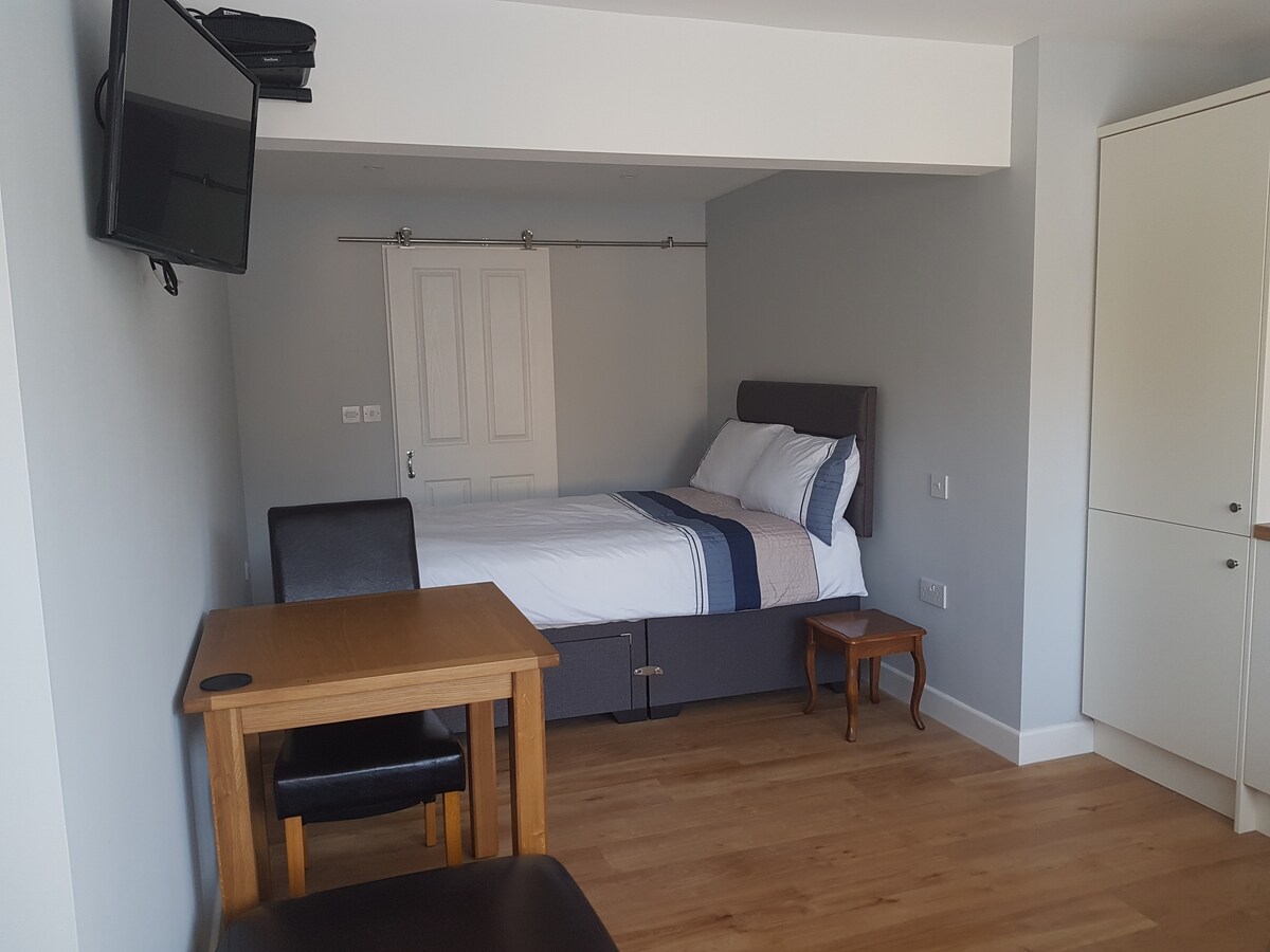 Esta habitación recién reformada ofrece instalaciones compactas con cocina americana, dentro de un hermoso entorno rural, con preciosas vistas y rutas locales para pasear/montar en bicicleta, pero cerca de todos los servicios necesarios en Henley-in-Arden y Hockley Heath, a solo unos (tres) minutos en coche, con muchos pubs, restaurantes y cafeterías locales para elegir. Es posible que haya aparcamiento en el aeropuerto, ya que la ubicación está a poca distancia en coche del aeropuerto de Birmingham y del NEC. Blythe Valley, JLR y Solihull también están cerca para los huéspedes que se alojen.