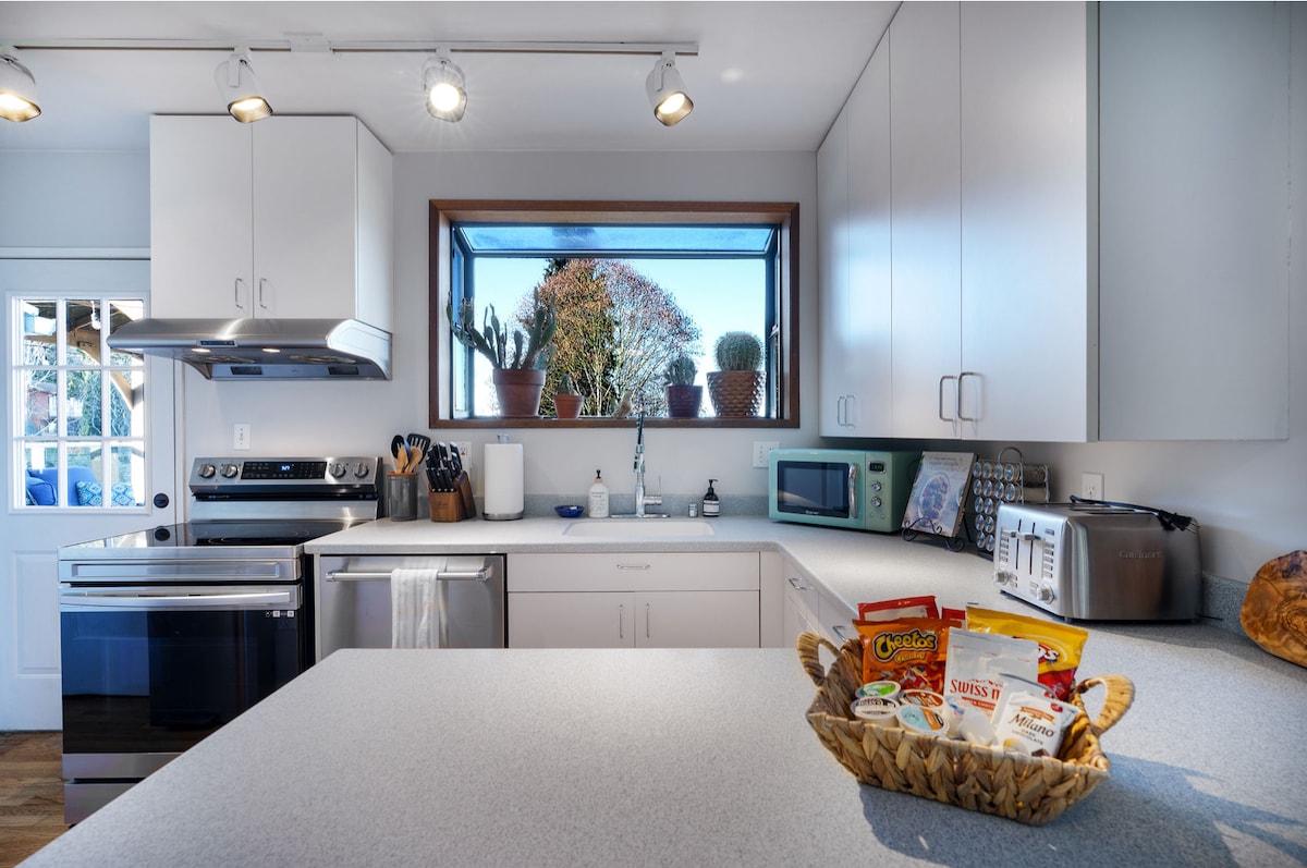 Hermosa casa rural con un porche cubierto y jacuzzi en un entorno rural a solo tres minutos del centro de Snohomish. La cocina es definitivamente el punto focal del interior. Es abierta y luminosa, con todas las necesidades de tu cocina. Café y palomitas de cortesía incluidos. Cuando salgas, disfrutarás de vistas a globos aerostáticos por la mañana y paracaidistas durante todo el día cuando el cielo está despejado. Disfruta del porche cubierto con cómodos muebles de patio y un relajante jacuzzi.