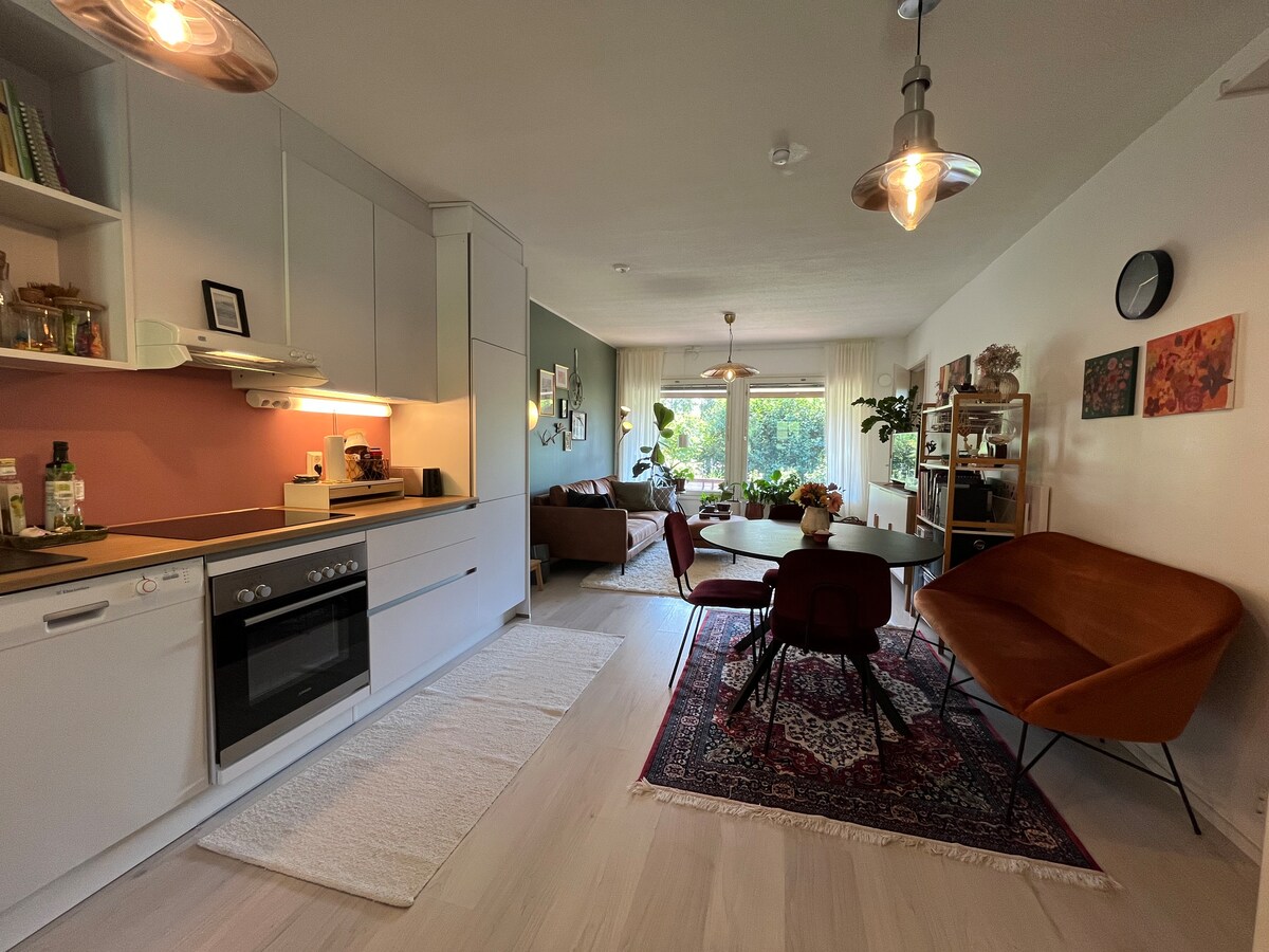Luminoso y limpio apartamento de dos habitaciones con sauna a orillas del lago Jyväsjärvi. Casa construida en 2019 en la zona de viviendas de la feria a orillas de la playa. Desde el amplio balcón acristalado se abre un paisaje lacustre sin obstáculos en dirección al centro. Playa. Plazas de aparcamiento privado junto a la puerta principal. La zona cuenta con hermosos y variados terrenos para correr y un campo de golf de disco volador. El apartamento está completamente equipado (amplia vajilla, electrodomésticos, capacidad para cuatro personas, televisor inteligente de 65" con servicios de transmisión en directo, bomba de calor de aire, silla colgante, etc.).