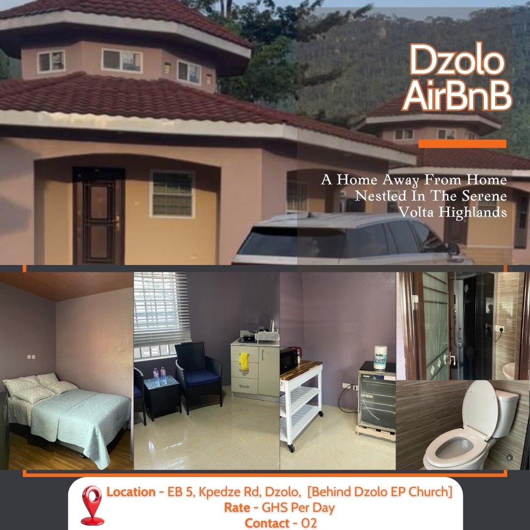 Just 20 minutes drive from Ho Fully Air-Conditioned Rooms Mini Kitchenette (Microwave & Sink) In-Built Bathrooms in All Rooms Serene Garden & Mountain Views Secured, Gated & Walled Compound Standby Generator, Wired Security Fence Close To: The highest human dwelling place in Ghana Amedzofe Canopy Walk Wli Waterfalls & Tafi Atome Monkey Sanctuary Afadzato & Gemi Mountains 5 miles from the Togo Border Food Available From eateries in Ho