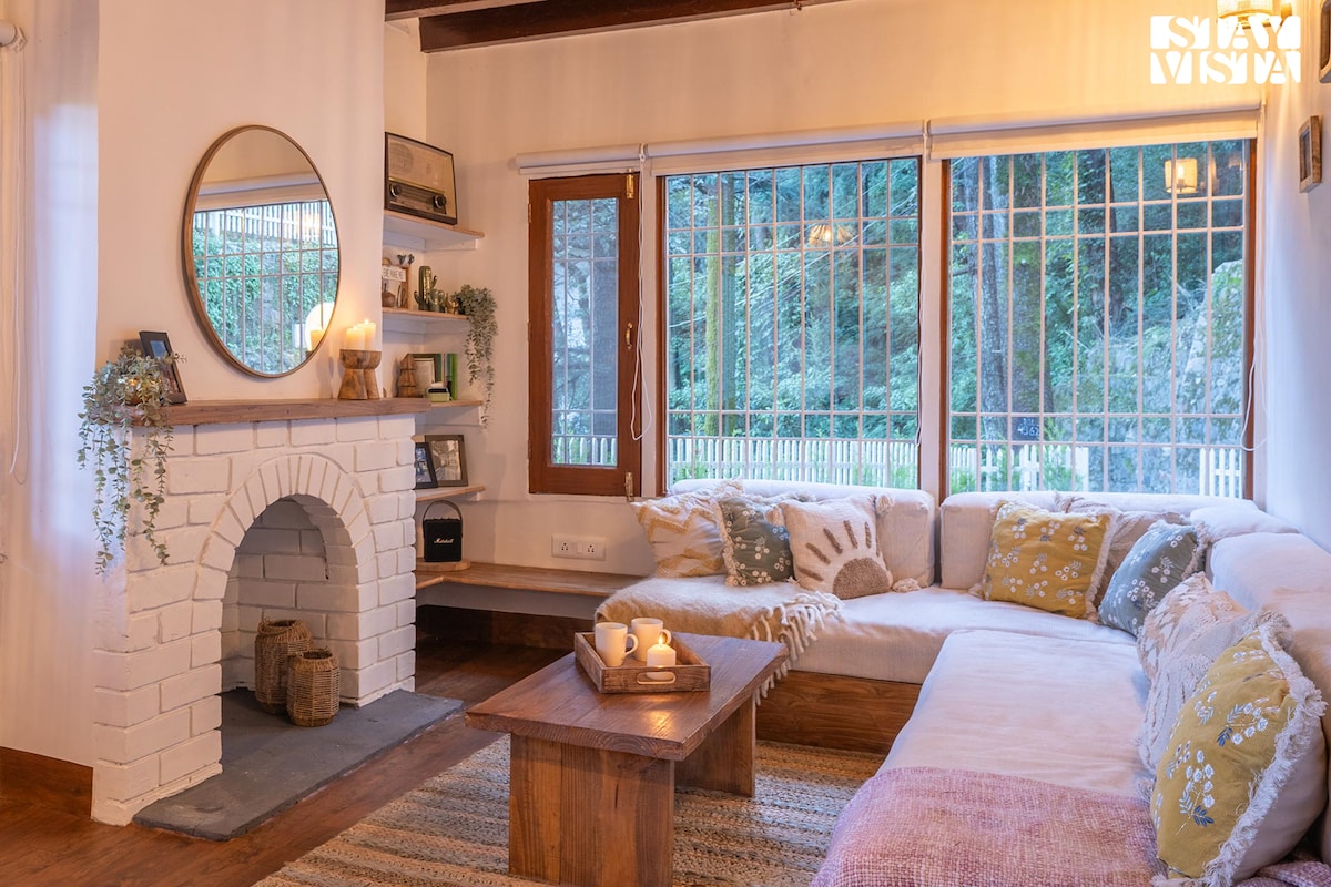 Bienvenido a Mystic Pines, una lujosa villa independiente de 3BHK ubicada en las serenas colinas de Kasauli. Con comodidades modernas e impresionantes vistas, Mystic Pines cuenta con una impresionante sala de estar de cristal y un jardín abierto que ofrece vistas despejadas de la fascinante puesta de sol de Kasauli. Con interiores bellamente diseñados y servicios esenciales como chef privado, internet, calentador, géiser, respaldo de energía, hoguera y barbacoa, esta villa promete una mezcla perfecta de lujo y tranquilidad.