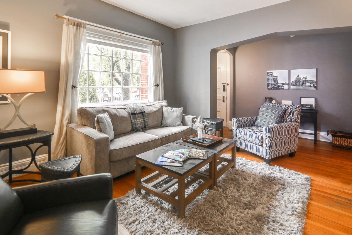 Situado en el corazón de Elmwood Village, este apartamento está ubicado entre avenidas históricas y a solo una milla a pie del famoso Delaware Park de Olmsted y de la galería de arte AKG. Es la unidad inferior de una casa de dos unidades. Los mercados de agricultores, los festivales y el histórico Garden Walk se celebran en este barrio. A pocos pasos de restaurantes, tiendas y bares, ofrece actividades de ocio completas. Ven a relajarte al porche y disfruta de todo lo que ofrece Buffalo.