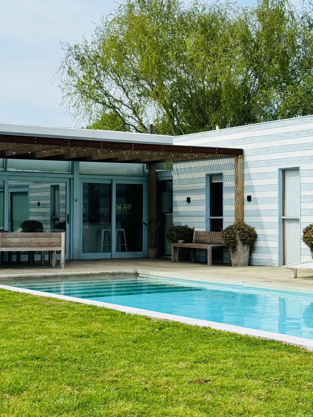 Casa con piscina, a 400 mts del mar. Cuenta con 1 dormitorio con cama queen y con un living-comedor súper amplio y luminoso de 50 metros cuadrados con un sofá cama, tv con WIFI y cocina integrada con horno eléctrico, anafe, campana, microondas , jarra , etc. Cuenta estufa de alto rendimiento con horno para invierno y aire acondicionado Baño completo. Terreno totalmente cercado con alarma y cochera techada. Fondo de 800 mts con parrillero, deck y pergola. Se aceptan mascotas.