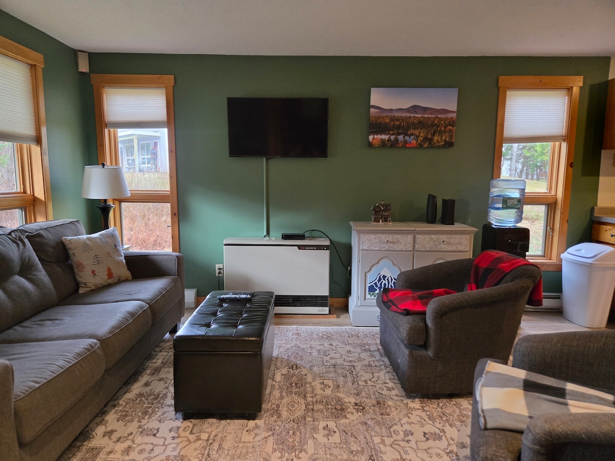 ¡A 10 minutos en auto de Sugarloaf para esquiar con senderos para esquí de fondo y bicicleta de montaña justo al salir de tu puerta! Condominio en planta baja con vistas al río Carrabassett. Capacidad para tres: cama tamaño queen en el dormitorio y una cama de día en la sala de estar. Parrilla de gas en la terraza, TV por cable básica, altavoz inalámbrico, bluetooth. Estación de trabajo completa con escritorio, monitor de computadora, impresora, teclado, mouse, etc. (Sin lavavajillas.) Acceso a lavandería de monedas. Estacionamiento gratuito. No se admiten mascotas. No se permite fumar.