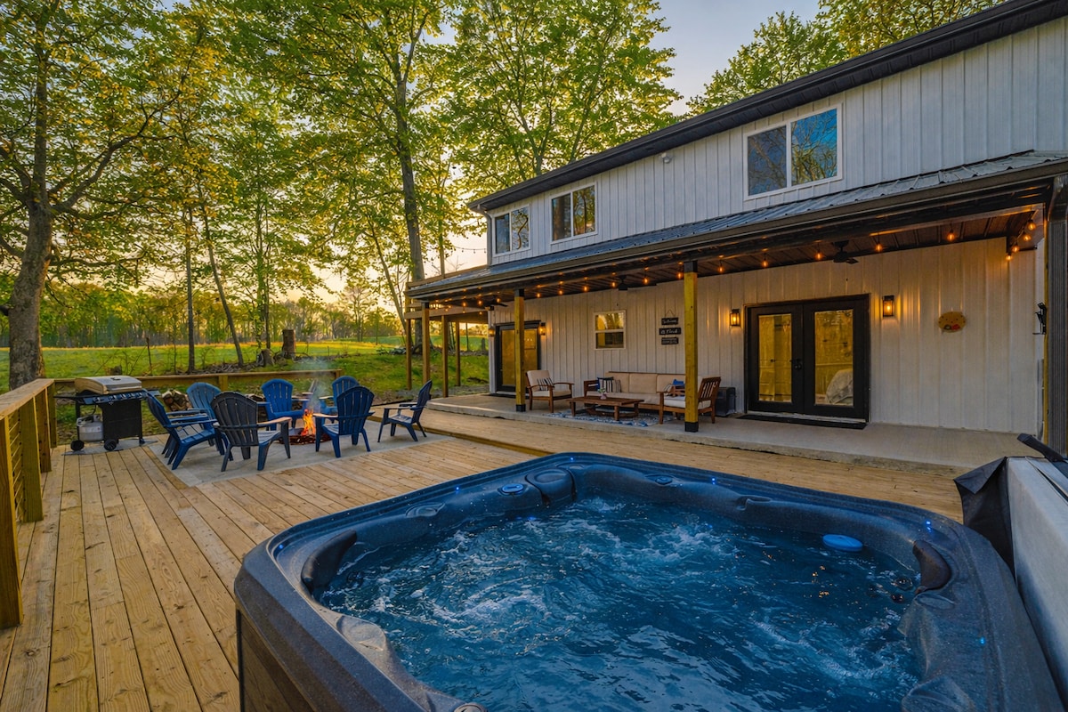 Disfruta de un ambiente retro en este granero reconvertido. Deleita tus sentidos, desde el olor de la madera de pino hasta los sonidos de las campanas de viento en el porche cubierto y ventilado o un vinilo vintage en el tocadiscos. Enciende un fuego y observa cómo bailan las llamas en la estufa de leña. Disfruta de sorbos de tu bebida favorita desde una mecedora con vistas a las estribaciones de los Apalaches. ¡Sumérgete en el jacuzzi! Porcelana vintage, cristalería, arte, vinilos, muebles, juegos... Todo está en los detalles.