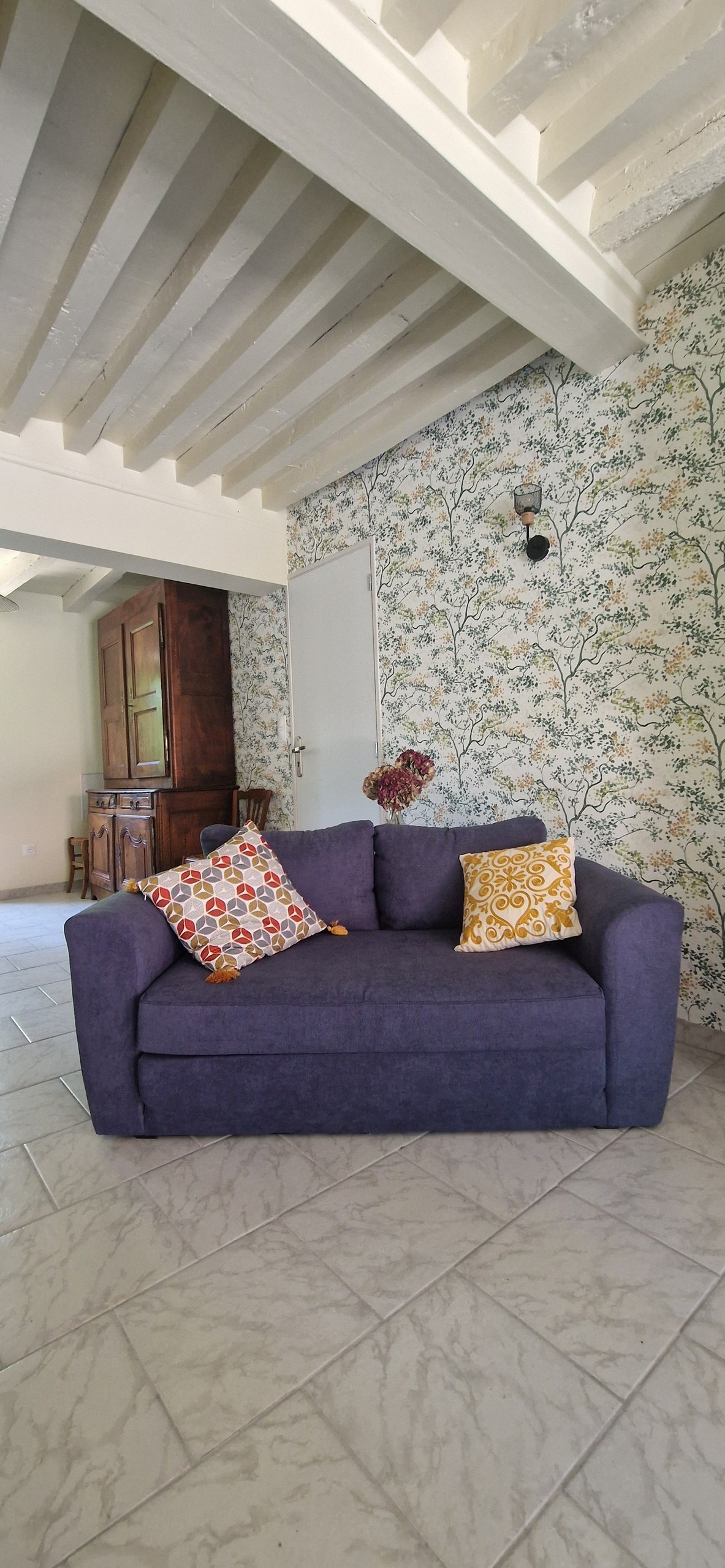 Cool, comfortable and spacious (90m2) home on 2 floors. Large kitchen , lounge and terrace on street level and fabulous 1 double bedroom open plan room on the 2nd floor. A converted grange perched on a mountain in a medieval village 16 minutes from the A6, this peaceful home makes an ideal stop over for holidays in the Alps or south of France. Please note - there is a studio apartment with its own entrance on the lower ground floor - rented separately.