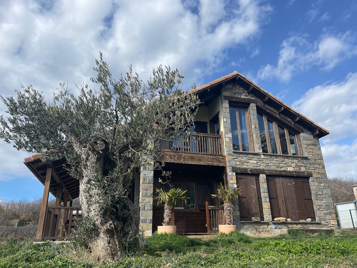 Proyecto de familia, un sueño de niño, «el lugar ideal» como decía mi hija Prune pequeña. A 1400 m de altitud con una vista impresionante, la casa está abierta a las montañas ya sea cocinando, como debajo del edredón. Estarás en nuestra casa con mi colección de vinilos, nuestros libros de cocina para pasar el mejor momento de descanso. Bañada por la luz, una invitación al exterior no se perderán las caminatas desde la casa.