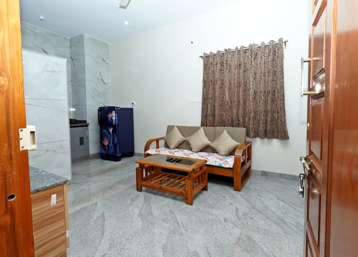 A comfortable private 1BHK apartment hosted by "Simpl Homes", located near Sarjapur Road and Delhi Public School Bangalore East. Just 3.5 km from Wipro Kodathi Gate and 5.5 km from RGA Tech Park, it’s convenient for professionals visiting the Sarjapur tech corridor. The apartment includes a bedroom, living area, kitchen, bathroom, and reliable WiFi, offering a fully private and practical stay.