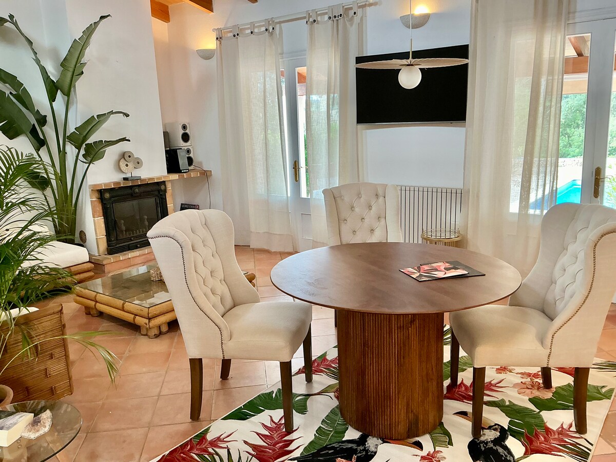 Una villa con un estilo rústico y encantador. Con paredes exteriores de piedra y un jardín extenso que rodea la villa, disfrutarás de un entorno natural y tranquilo. La piscina con hidromasaje es un oasis de tranquilidad, mientras que la zona del porche y la barbacoa invitan a disfrutar de una deliciosa comida al aire libre o a relajarse en sus acogedores sofás.