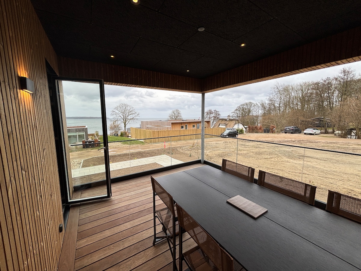 Apartamento separado de 90 m² en la planta baja con entrada privada. Desde la terraza hay una vista de 180 grados sobre el Little Belt. Cuatro camas + 2 niños en el piso. Amplia sala de estar con capacidad para 2 personas, dormitorio, baño con sauna, cocina con todas las comodidades + lavadora y secadora. Internet gratuito (Netflix) y canales de televisión. Vino, cerveza y agua están disponibles para su compra. Estacionamiento gratuito justo afuera de la puerta. El apartamento está en la parte inferior de una hermosa villa de 220 m2, que se encuentra con vistas al agua de 180 grados sobre el Little Belt
