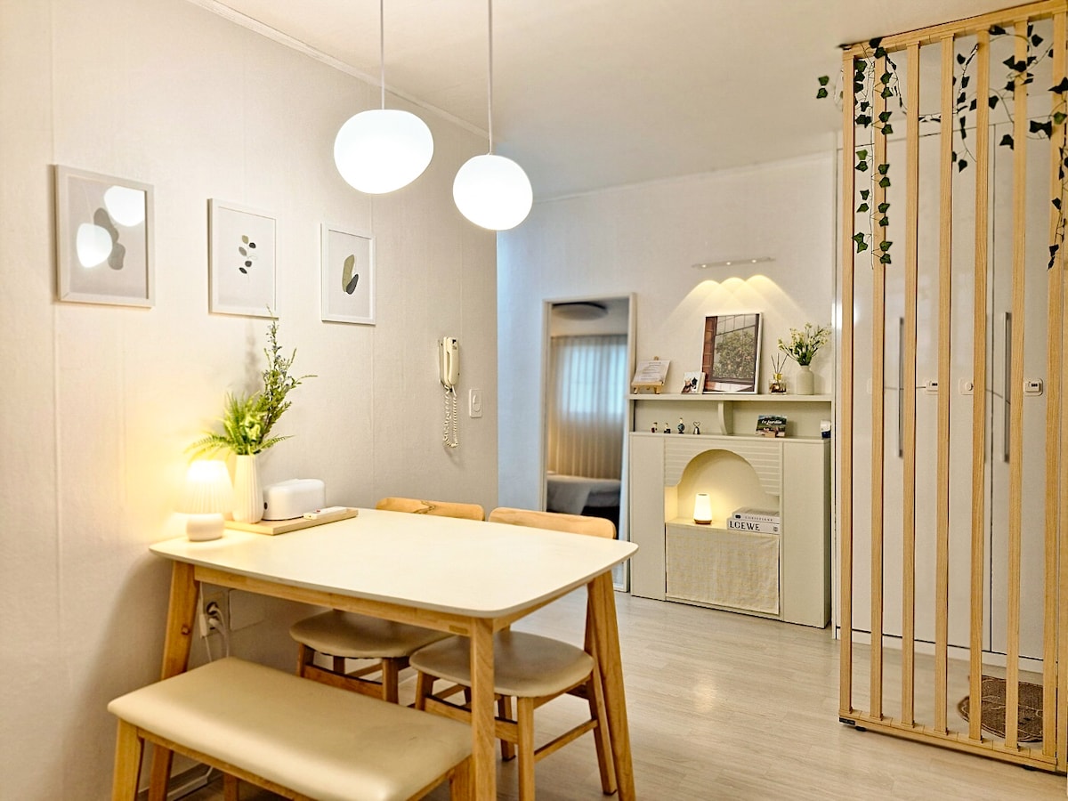 Te damos la bienvenida a la acogedora casa Woodsage♡ Intentaremos ser un lugar de descanso cómodo en un viaje emocionante. Nuestro alojamiento está en el tercer piso de un nuevo edificio terminado en 2023. Hay un ascensor. Situado en el centro de la estación de Cheonho, la estación de Gangdong y la estación de Gildong en la línea 5 Se encuentra a 10-15 minutos a pie y a 5 minutos en taxi. 🚨Transporte🚨 ☆Jamsil Lotte World, Lotte Tower, Seokchon Lake, 4 paradas de metro y 10 minutos. ☆ KSPO Dome metro 2 paradas a 5 min ☆Seongsu-dong a 20 minutos en metro ☆COEX, estación de Gangnam a 20-25 minutos en metro ☆Dongdaemun DDP, APM a 20 min en metro A 30 minutos en metro de ☆Jongno, Myeongdong. Hospital ☆Gangdong Seongsim a 15 minutos a pie Hospital ☆Asan a 20 minutos en taxi Hay una tienda de comestibles abierta las 24 horas a 1 minuto del alojamiento, por lo que es conveniente y hay un mercado tradicional, por lo que puedes experimentar la comida y la cultura coreanas.También es una zona residencial, por lo que es tranquila sin ruido por la noche. Este es un alojamiento que es administrado por el anfitrión y está altamente calificado por su limpieza. Si vienes con un niño pequeño Instalaremos una cama con cama, así que si la necesitas, Dímelo con anticipación😊