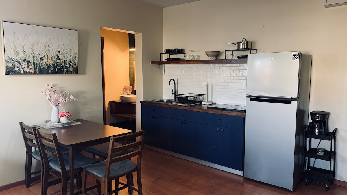 Disfruta de la comodidad de este alojamiento independiente,completamente nuevo, tranquilo y céntrico en la ciudad de Hermosillo. Perfecto para estancias largas y cortas, cuenta con todos los servicios, Cama muy comoda QUEEN baño amplio equipado,sala comedor,smart TV cocina equipada con todo lo necesario microondas, placa electrica y cafetera. wifi FACTURAMOS.