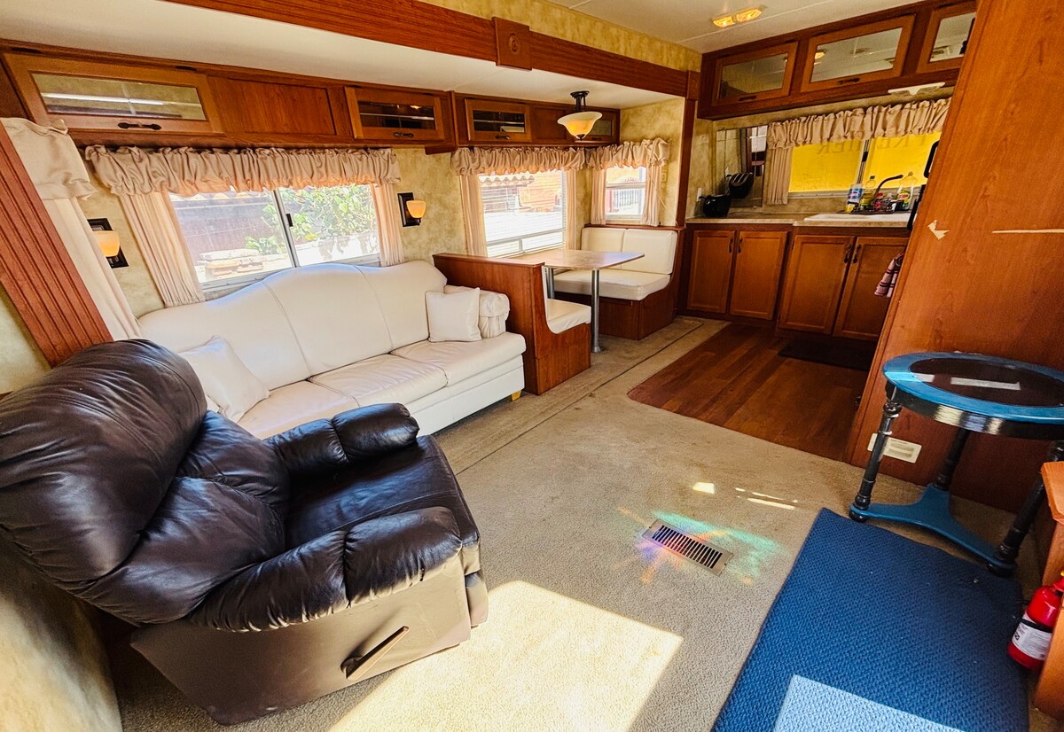 Camping in a comfortable Rv with all you need, some of the amenities include a queen bed, a full futon sofa bed, TV, DVD refrigerator, stove, microwave, cookware, AC. Breath-taking views await. Inquire for additional days. other RV also available, check our listings. (Rv park spot fee is not included guest arranges it with Rv park, )rockpoinfunreservations g m a I. Shades, table and chairs available for rent. Please inquiry about spot before booking