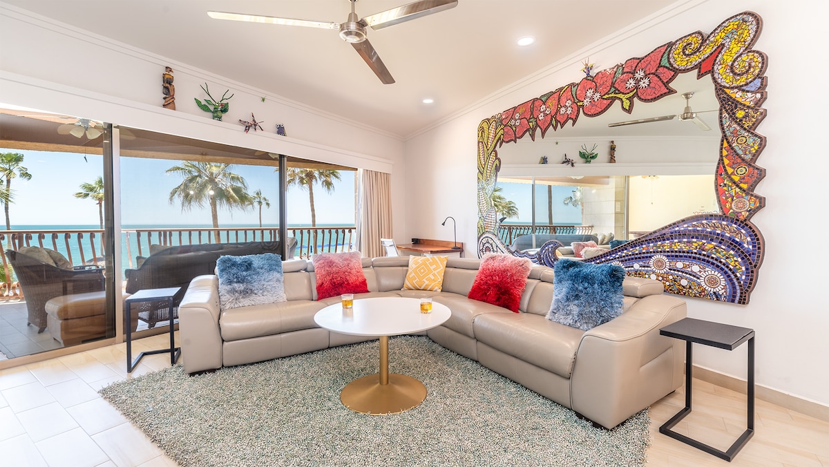 Propiedad frente a la playa, parte del fabuloso Sonoran Sun, con vistas a la famosa Sandy Beach. Camas: cama tamaño king en el dormitorio grande, sofá cama extraíble nuevo en la sala de estar. Wifi rápido, lavadora y secadora en el alojamiento, todos los electrodomésticos en la cocina, incluida tostadora, cafetera y licuadora de margaritas. Entrada con puerta electrónica (¡deja la llave cuando vayas a la playa!). Decorado con los fabulosos colores de la fiesta mexicana. Zona de fitness, a 10 minutos en coche del Malecón para disfrutar de una excelente comida. Bar en la piscina y jacuzzis.