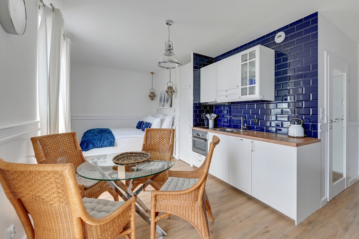 NORDBYHUS Angielska Grobla 239B es un apartamento de estilo náutico para 4 personas ubicado en una de las mejores ubicaciones de Gdansk en el centro de la ciudad. El apartamento tiene una superficie de 25 m2, ofrece una cómoda sala de estar con mesa de comedor para 4 personas, cama doble, sofá cama, cocina y un baño. El apartamento tiene una chimenea eléctrica que crea un ambiente acogedor y romántico.