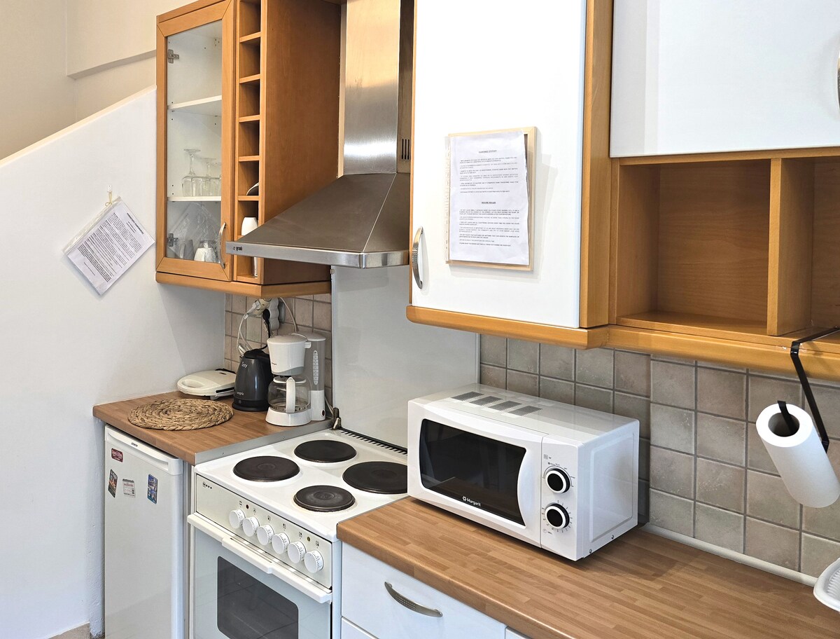 Casa independiente, equipada con todo lo necesario para una estancia cómoda y relajante, muy cerca del Suburbano y el Metro de Halandri. Fácil acceso al aeropuerto a través de Attiki Odos. El apartamento tiene internet de 50 mb, así como un proyector para disfrutar de la experiencia Home Cinema a través de la cuenta de Netflix. Cuenta con una máquina de Espresso con cápsulas, cafetera francesa, café griego, Nescafé en bolsitas y té para un agradable despertar matutino en el apartamento.
