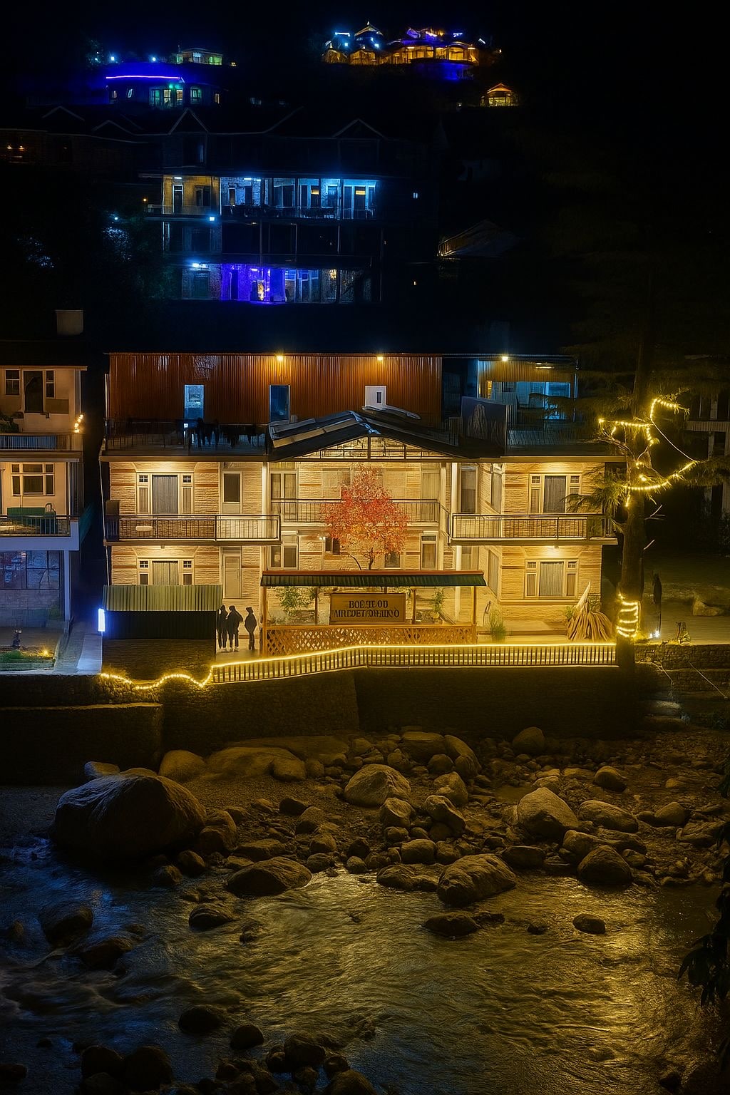 Encantadoras habitaciones de madera, a solo 4-5 pasos de un tranquilo arroyo. Disfruta de impresionantes vistas a la montaña y al río desde tu cama, complementadas con un balcón privado. Ideal para reuniones familiares o de amigos, nuestra espaciosa propiedad ofrece diversas actividades. Saborea deliciosos platos de cocina múltiple en nuestro restaurante y cafetería del hotel. Disfruta de una hospitalidad inigualable de una familia jubilada del ejército. ¡Reserva tu estadía para una escapada serena! y una escapada tranquila.