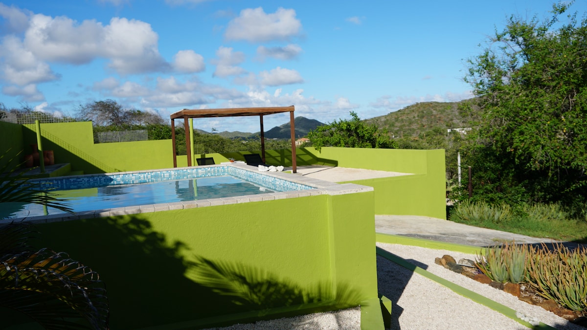 Si has soñado con una villa privada asequible con vistas increíbles, piscina y acceso a una playa privada, no busques más. Villa Bon Bini se encuentra en la parte más alta de la colina con vistas al mar en el centro vacacional Cas Abou. Está escondida, rodeada de un exuberante jardín tropical. La casa está totalmente equipada con todo lo necesario para pasar largos días de relax junto a la piscina con amplias vistas al mar.