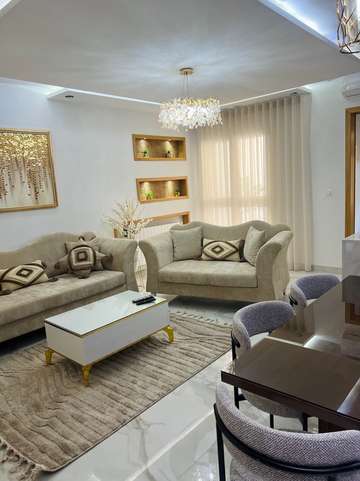 In a 3-min walk from the beach, ideally located in the heart of the tourist area, near the Mövenpick Hotel, discover our brand-new apartment (S+1) nestled in a modern and secure residence. Enjoy an unmatched experience in a strategic neighborhood, surrounded by restaurants, cafés, and all amenities. Perfect for exploring the city and enjoying the vibrant nightlife. Whether you're looking for relaxation or adventure, this apartment is the ideal choice for a memorable stay in Sousse.