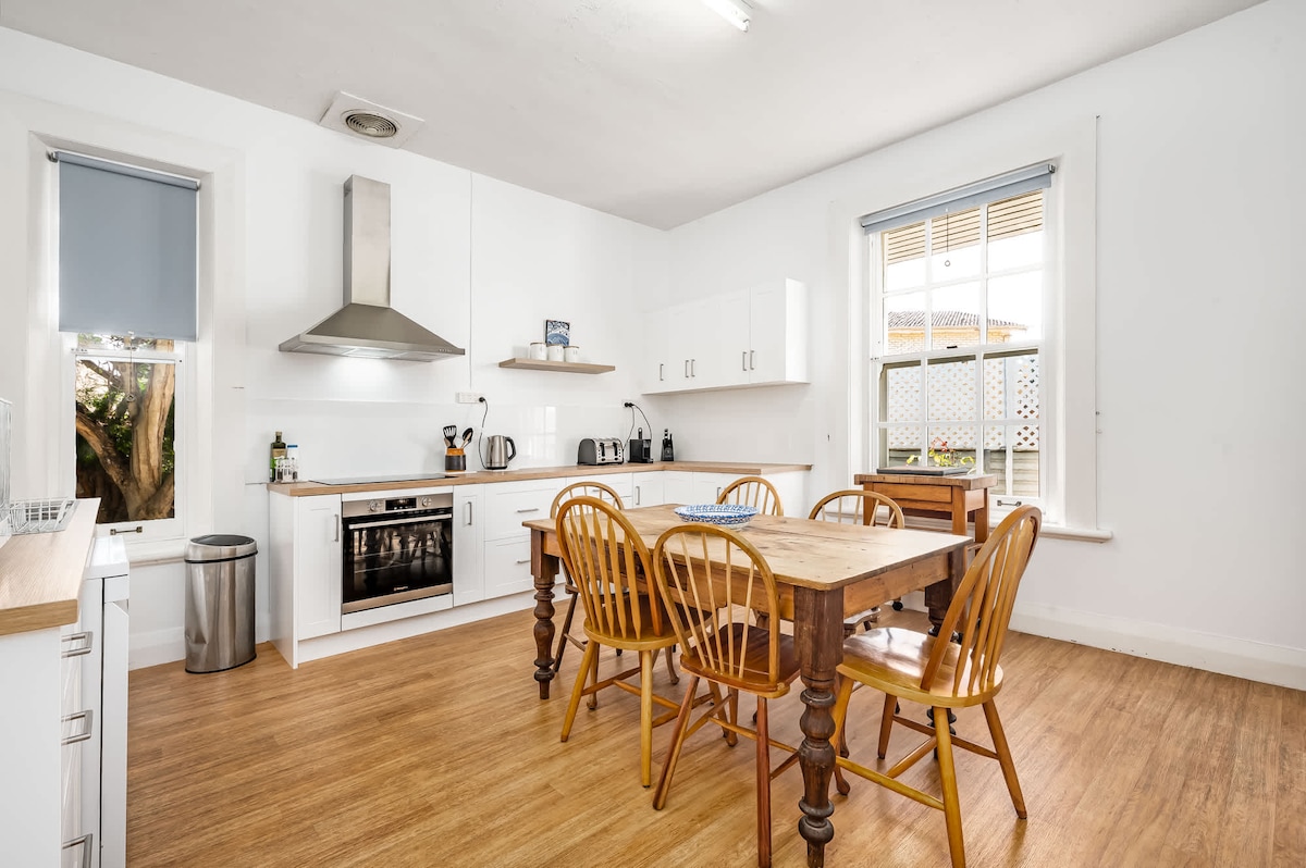 ALÓJATE en The Lodge. Disfruta de alojamiento y desayuno y de la experiencia completa de esta exclusiva logia exmasónica convertida que puede alojar de 1 a 8 personas en espacios bajos divididos por paredes. Dos televisores inteligentes, wifi gratuito y espacio de oficina dedicado. Estilo loft a gran escala con techos altos, suelos de jarrah de dos niveles, una estética de diseño ecléctico, arte aborigen local, piezas vintage, paredes de piedra y excelente aire acondicionado/calefacción. Un espacio de recarga relajante que hace que alojarse y trabajar desde aquí sea muy fácil.