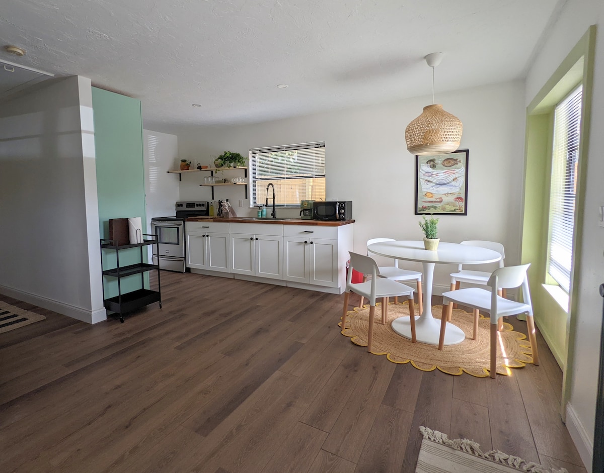 Este apartamento es un soplo de aire fresco: lo sentirás cuando entres y te sentirás tranquilo y en paz de inmediato. Limpio y espacioso, con una cómoda cama tamaño king, un baño completo y una pequeña cocina, y una decoración especial al estilo antiguo de Florida que te da la sensación de hospitalidad sureña que estás buscando. ¡Central para gran parte de Sarasota, puedes ir de aquí a la isla de Siesta Key en menos de 10 minutos! Ya sea que estés aquí por negocios o por placer, este dulce estudio seguramente será un punto culminante.